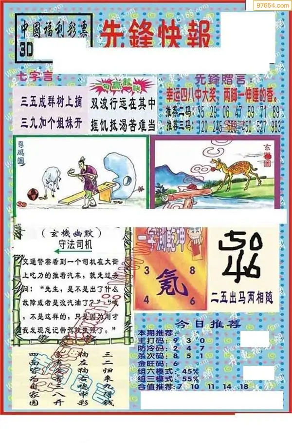 087期3D牛彩预测报+彩吧字谜报
