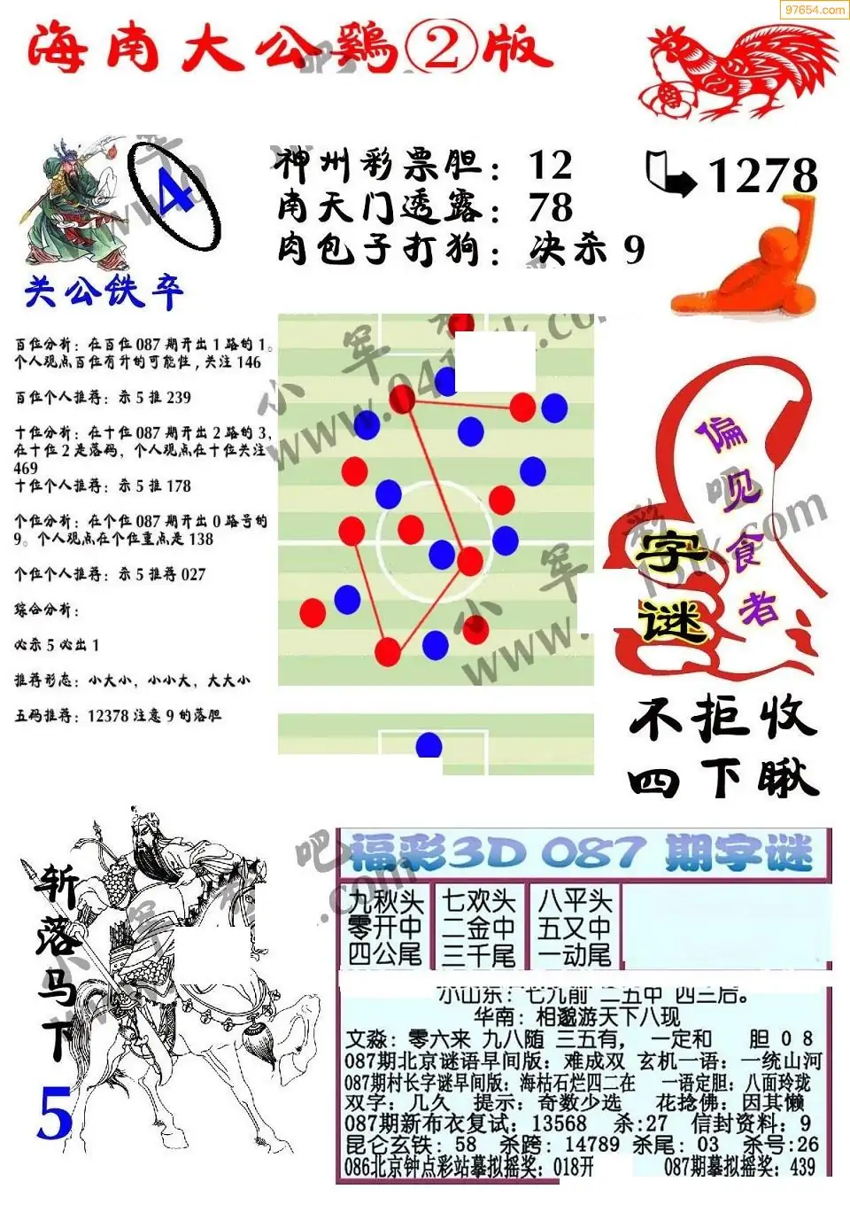 087期3D牛彩预测报+彩吧字谜报