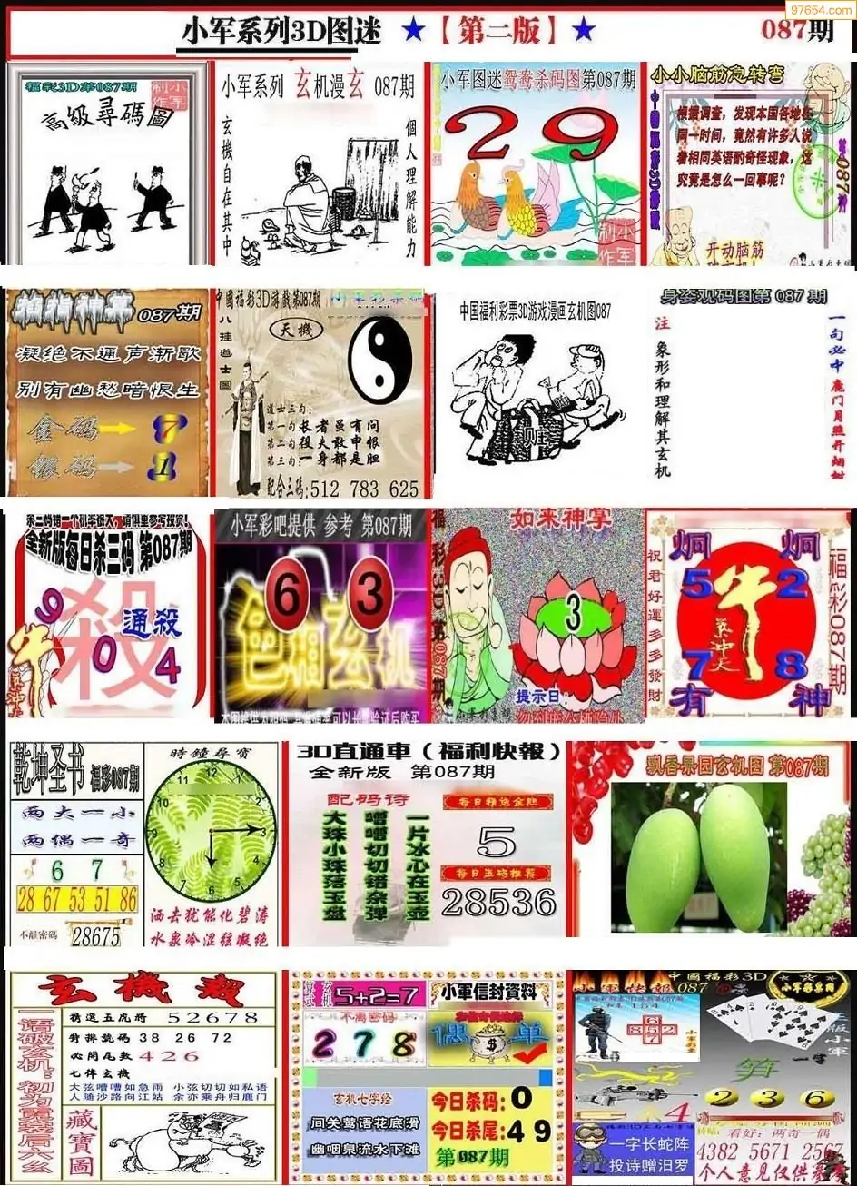 087期3D牛彩预测报+彩吧字谜报