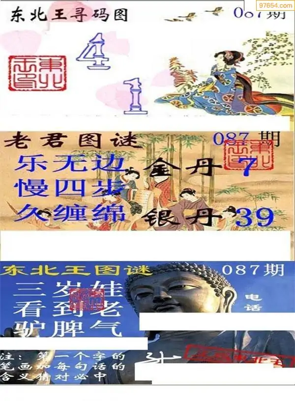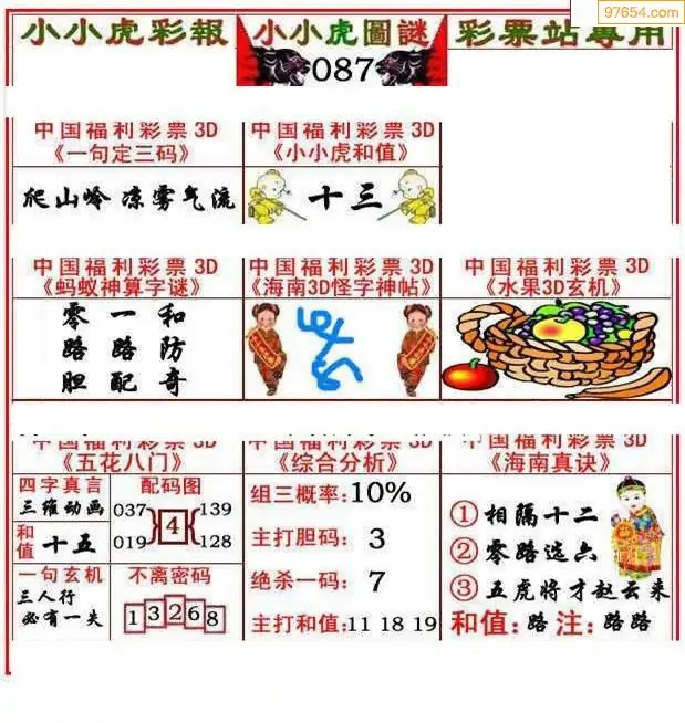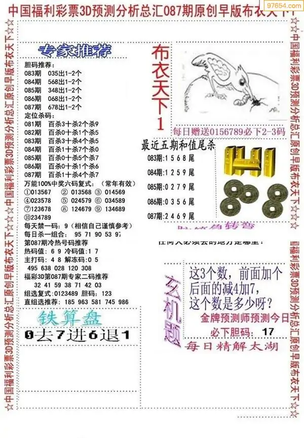 087期3D牛彩预测报+彩吧字谜报