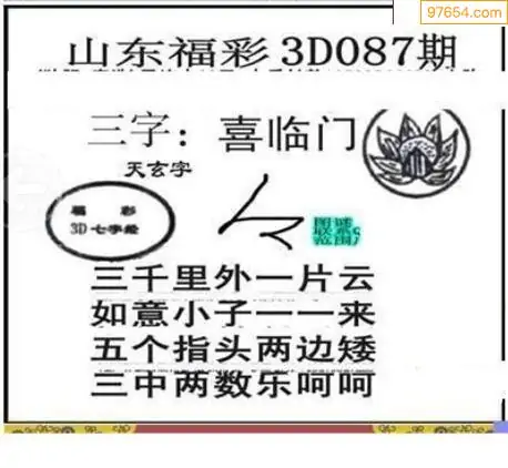 (3)2026087期3D预测总汇全图_福彩3d图谜字谜总汇
