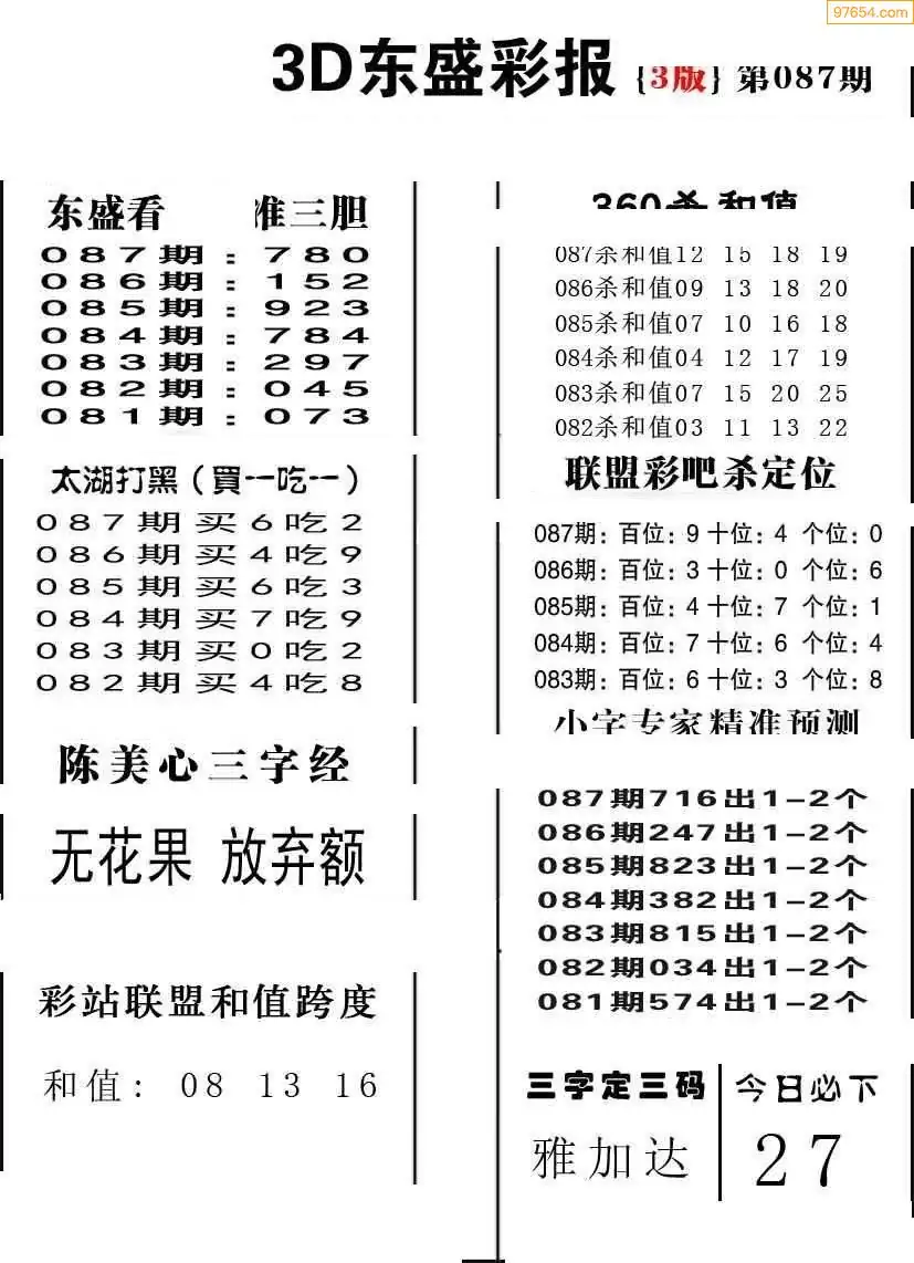 (8)26年086期今日3d各类彩报汇总