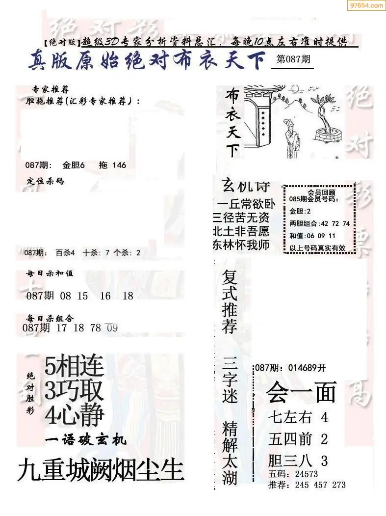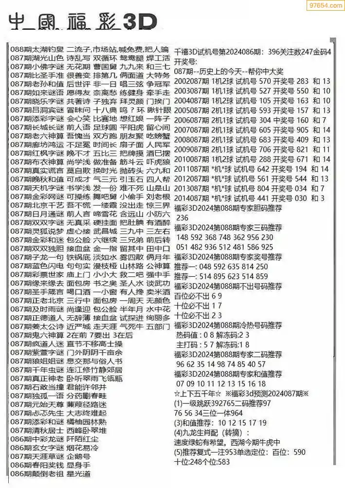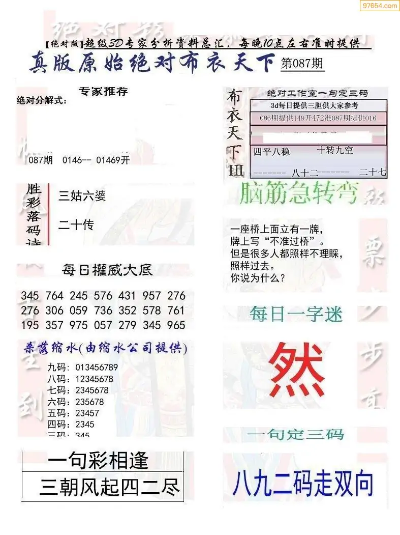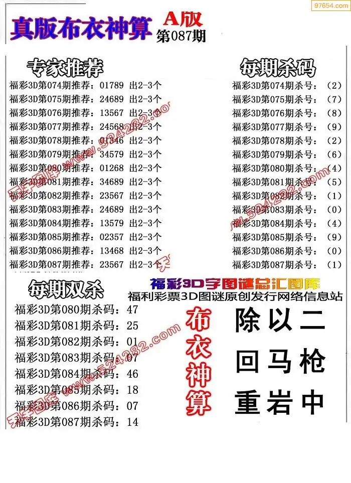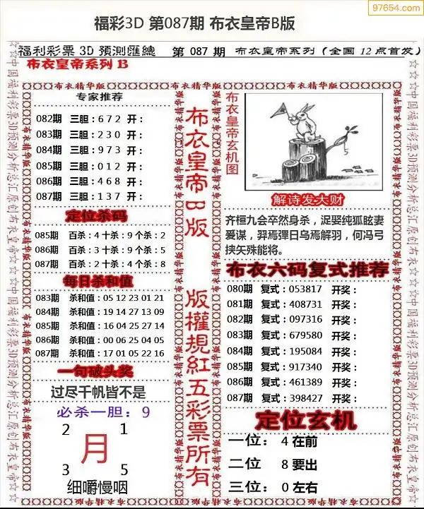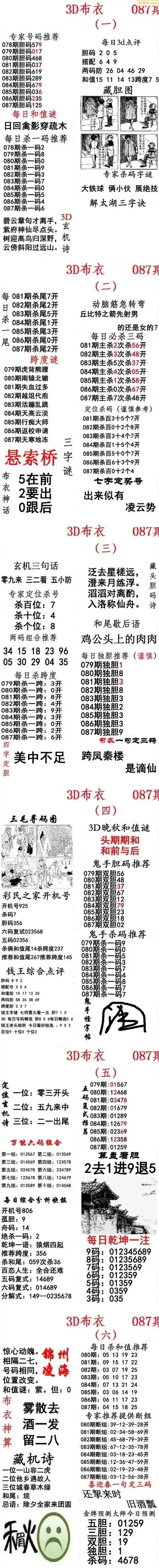 (2)26年087期本期3d图迷汇总_福彩3D图谜总汇图