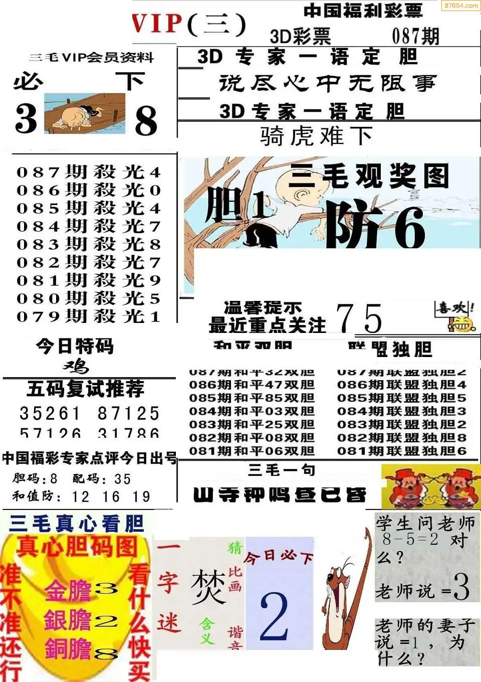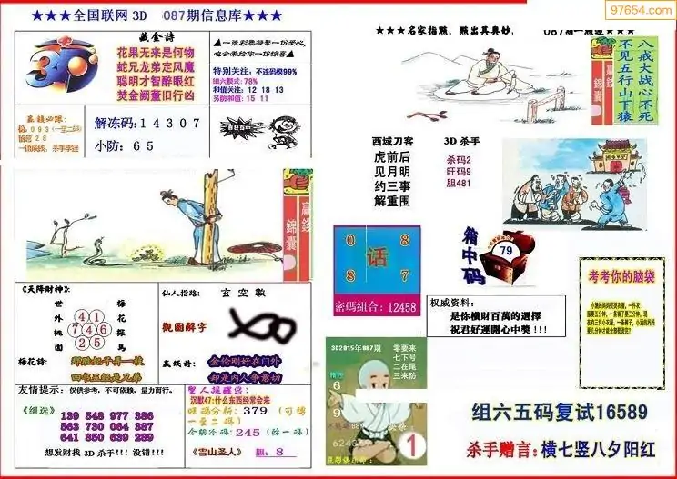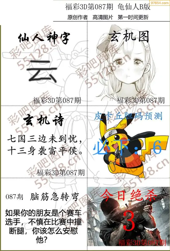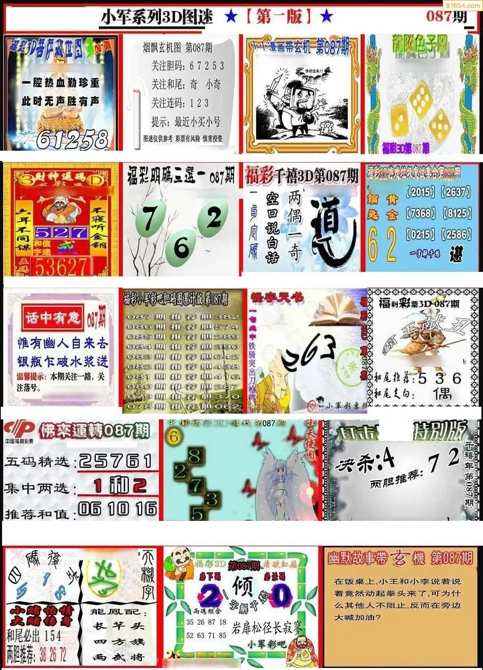 (3)2026087期3D预测总汇全图_福彩3d图谜字谜总汇