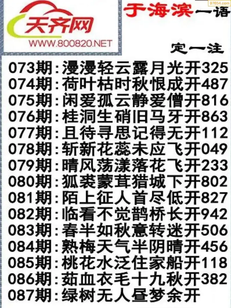 于海滨福彩3D26087期一语定一注
