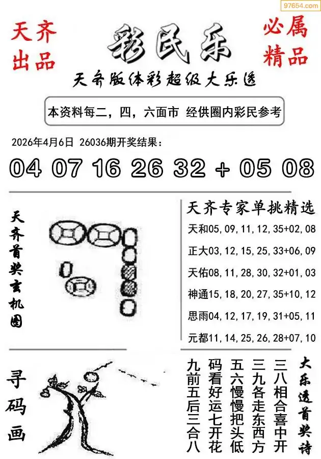 体彩大乐透037期贵州老戴本期龙头凤尾推荐