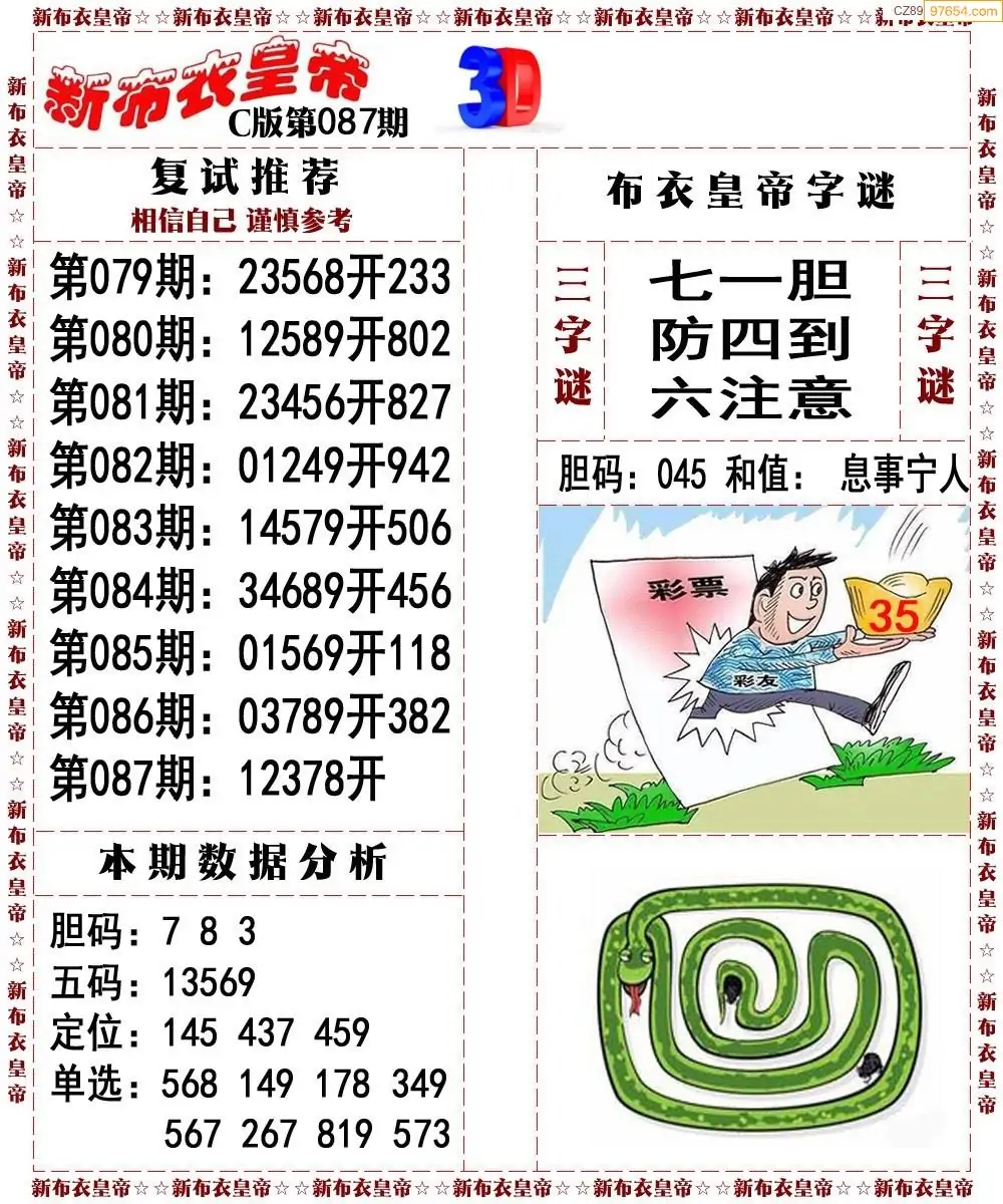 26087期3d新布衣皇帝早间四版