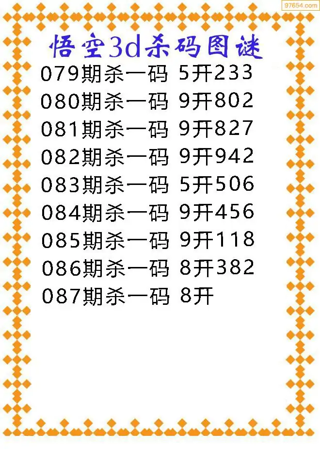 (3)2026087期3D预测总汇全图_福彩3d图谜字谜总汇