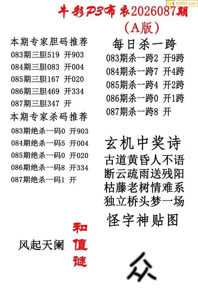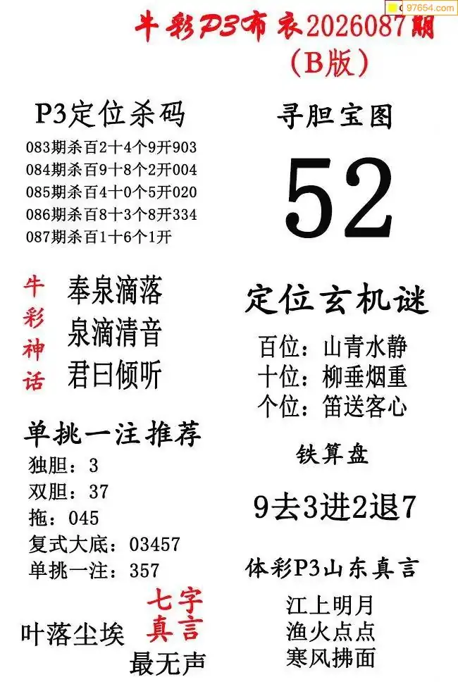 2026087期彩友图迷汇总_体彩排列三字谜图谜总汇最新更新