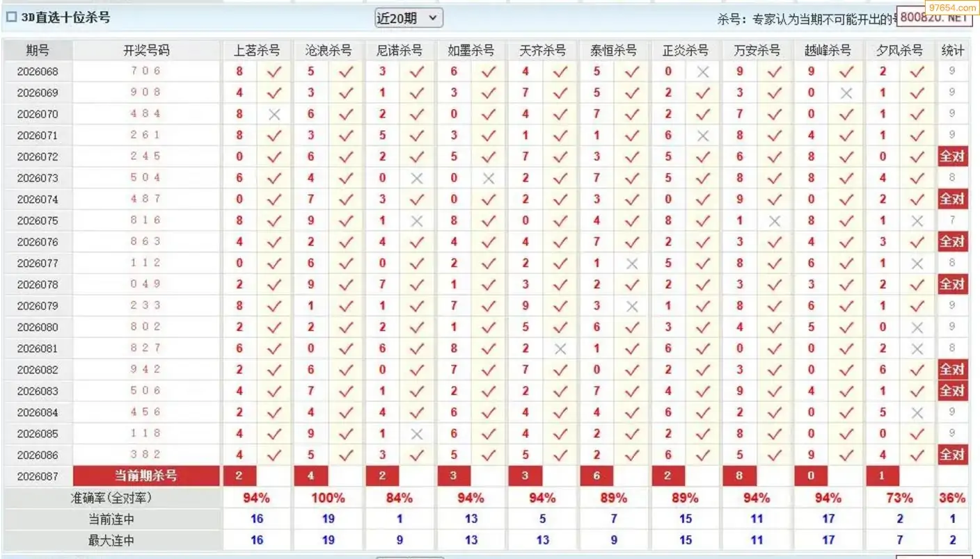 福彩087期3d雷声大精华杀码 12连中
