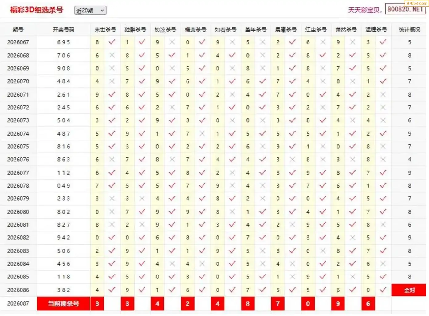 福彩087期3d雷声大精华杀码 12连中
