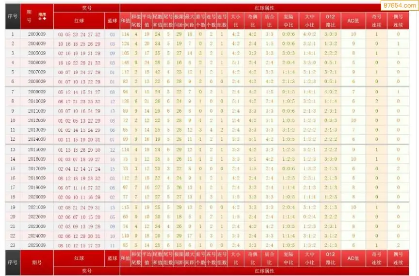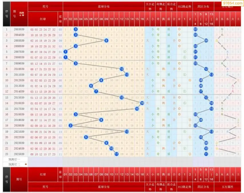 039期双色球历史同期图表+走势图