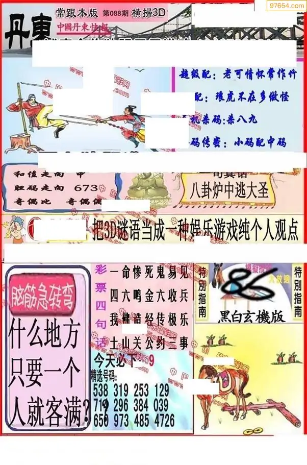 088期3D牛彩预测报+彩吧字谜报