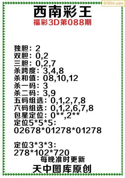 3d原创088期东北财神预测