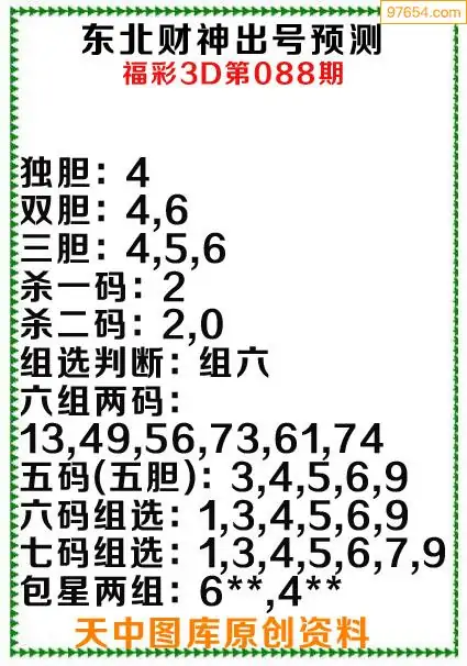 3d原创088期东北财神预测