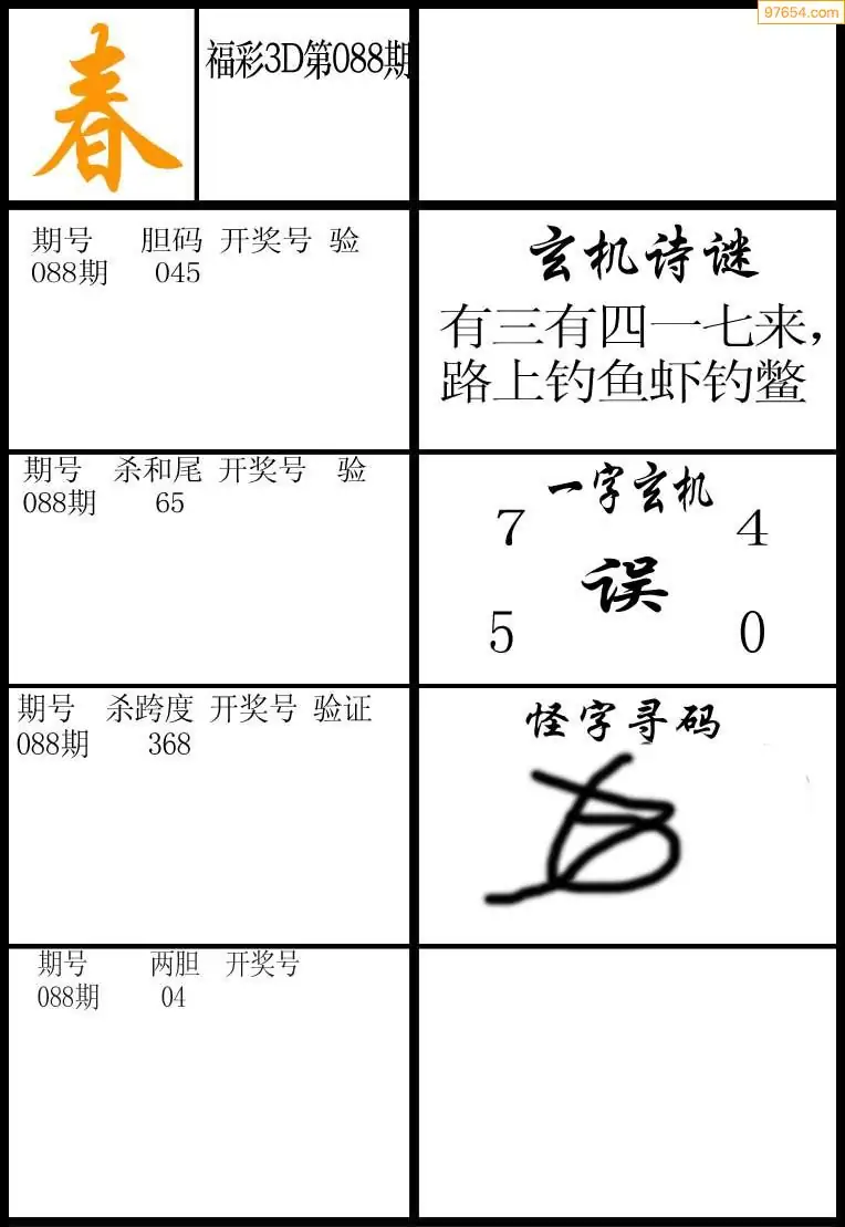 088期福彩天机壁怪字图