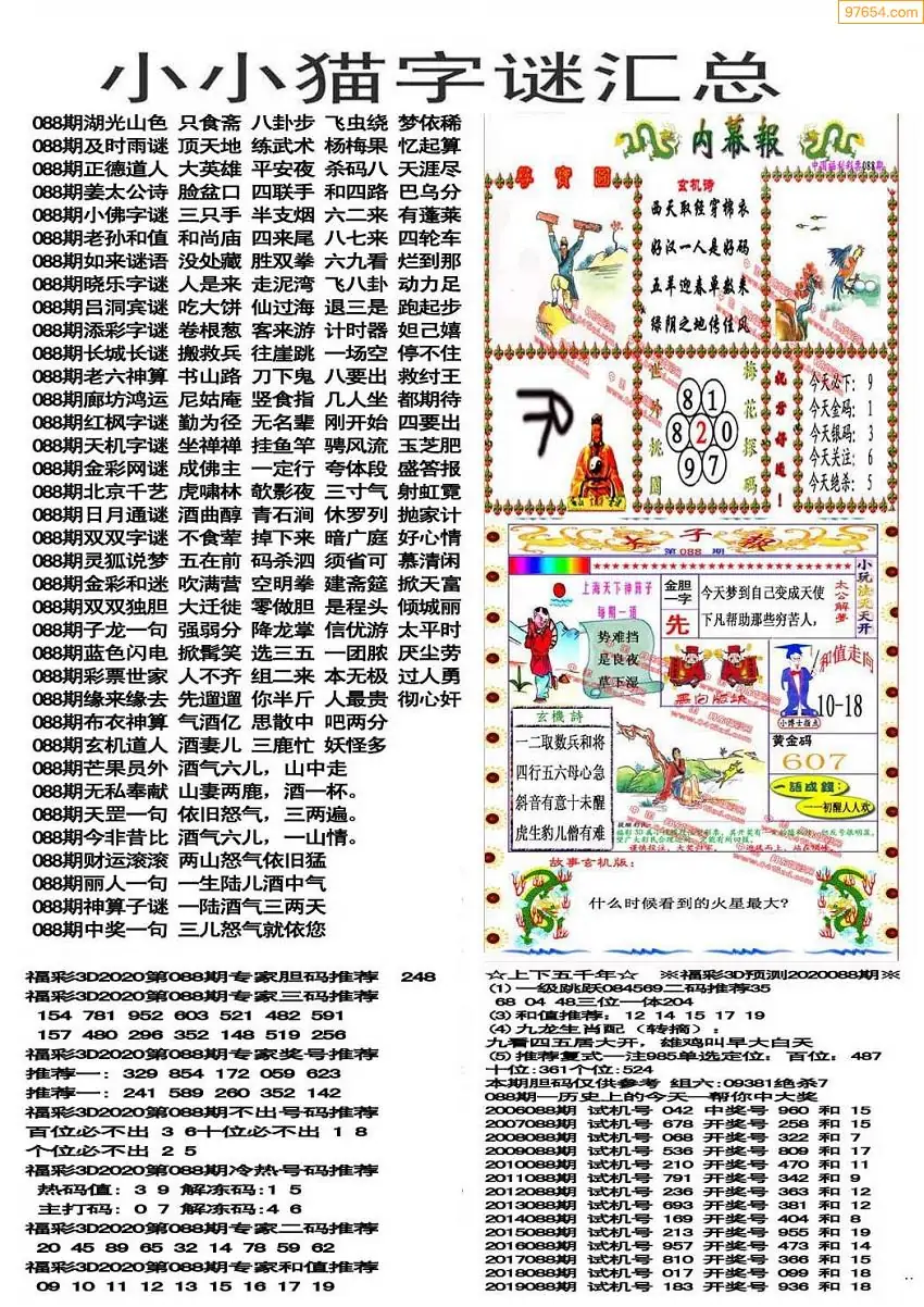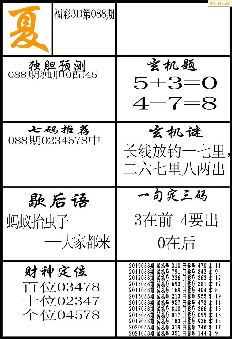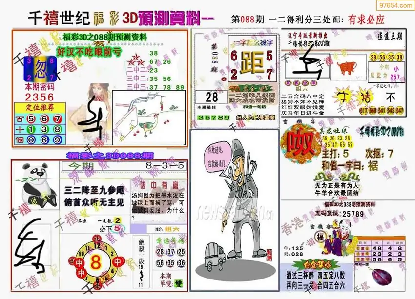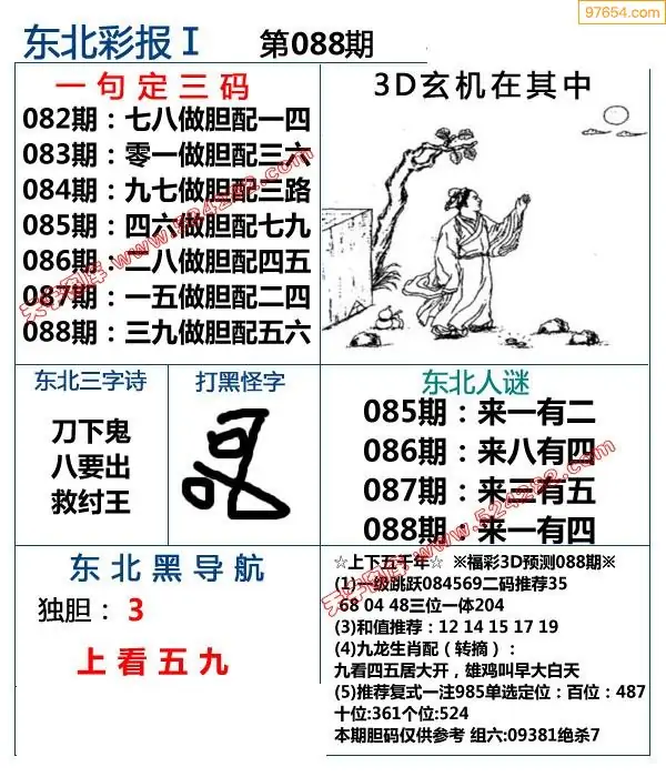 088期3D牛彩预测报+彩吧字谜报