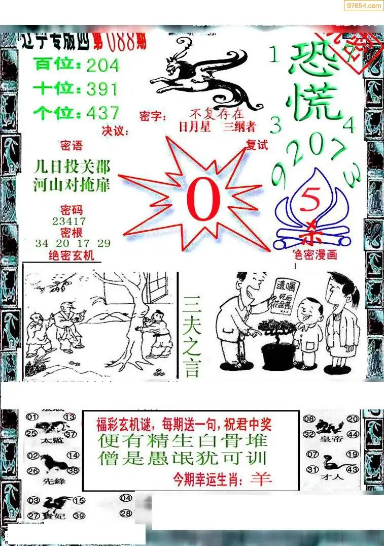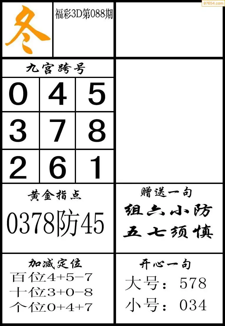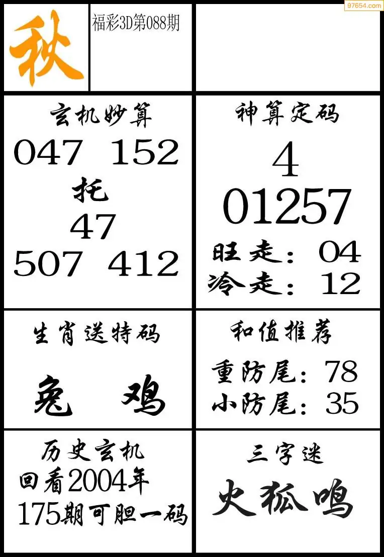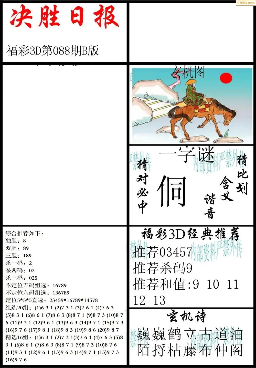 088期3D牛彩预测报+彩吧字谜报