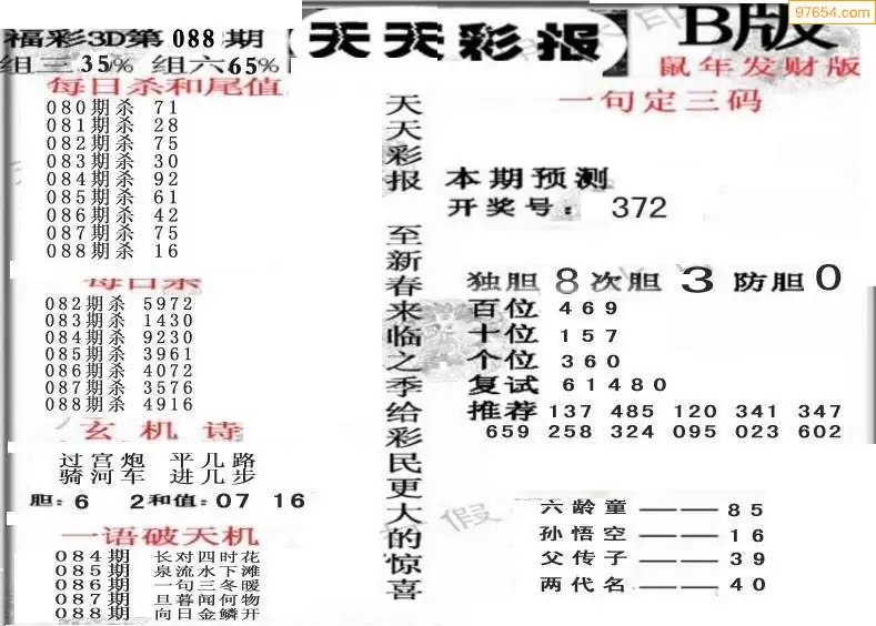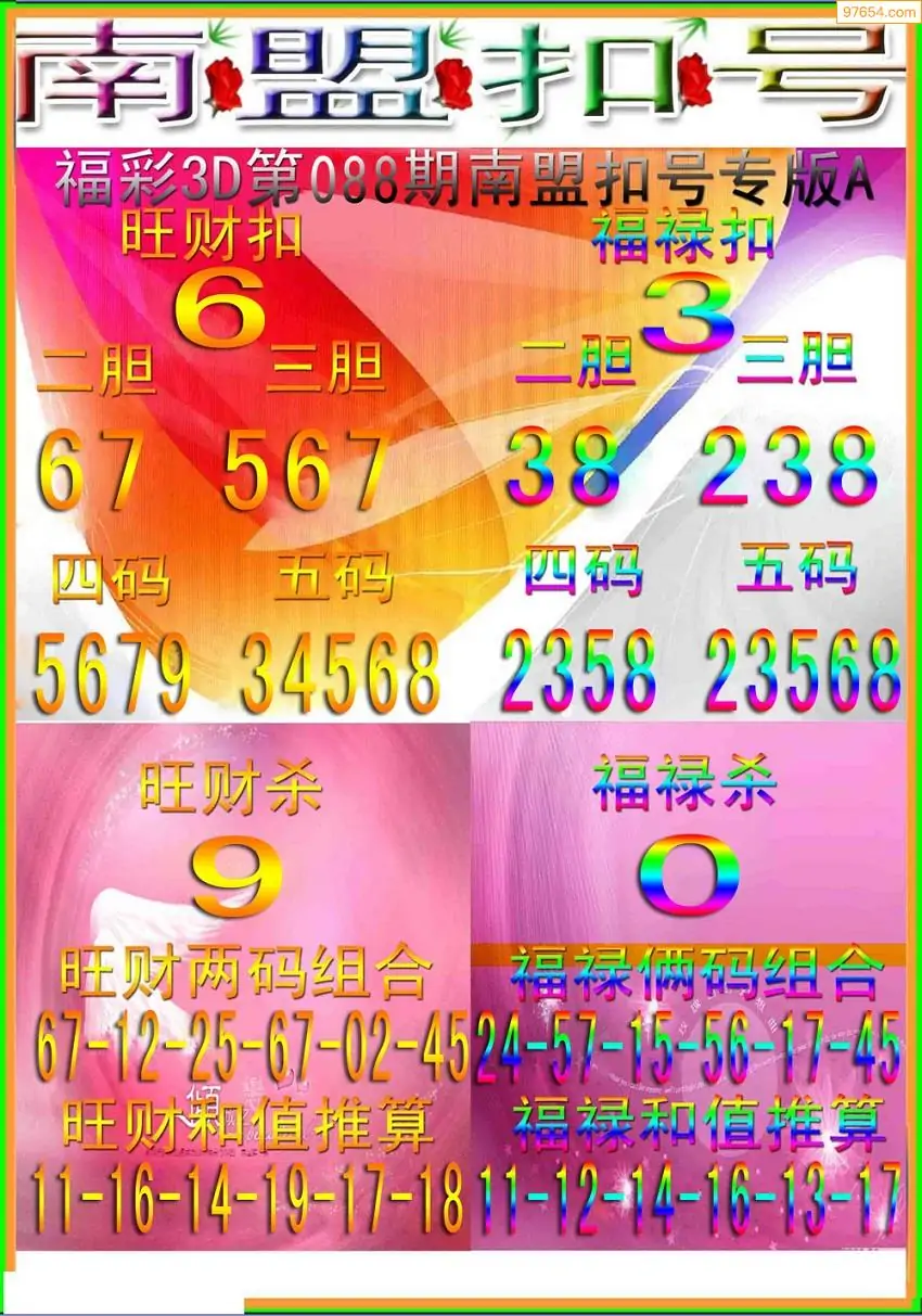 福彩3D088期天牛彩吧套图整合总汇