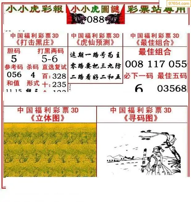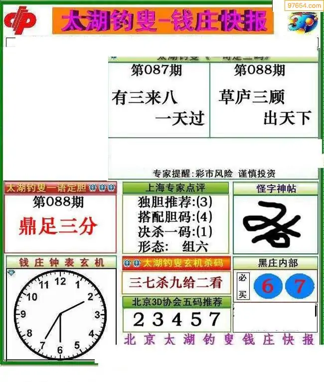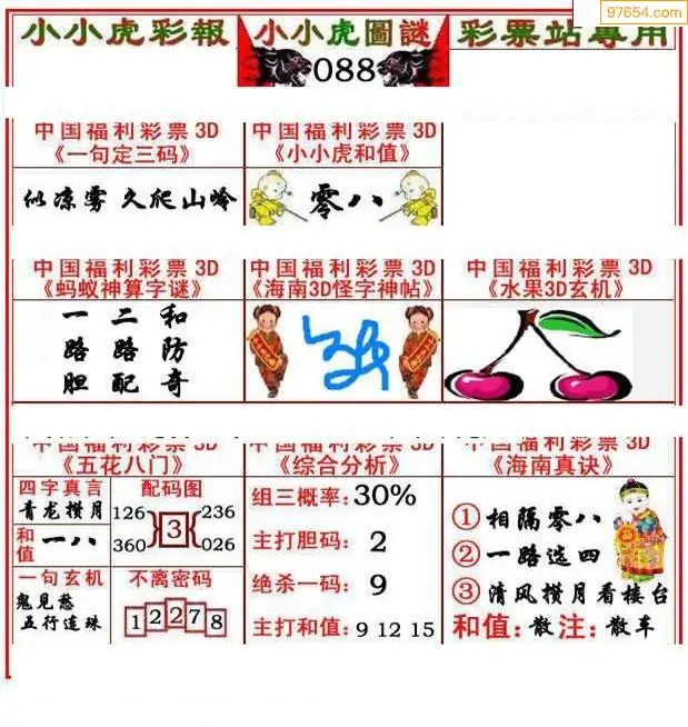 088期3D牛彩预测报+彩吧字谜报