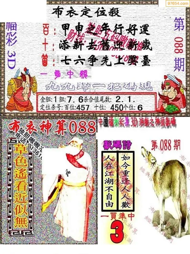 088期财神一句定码3D图库