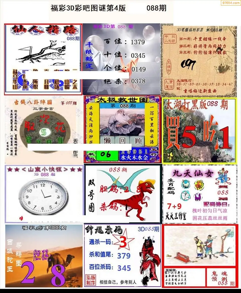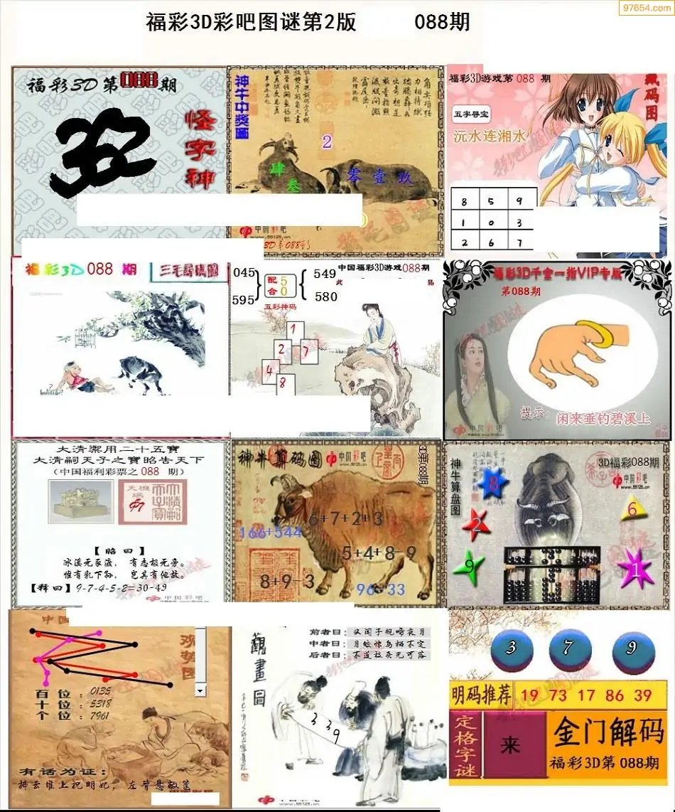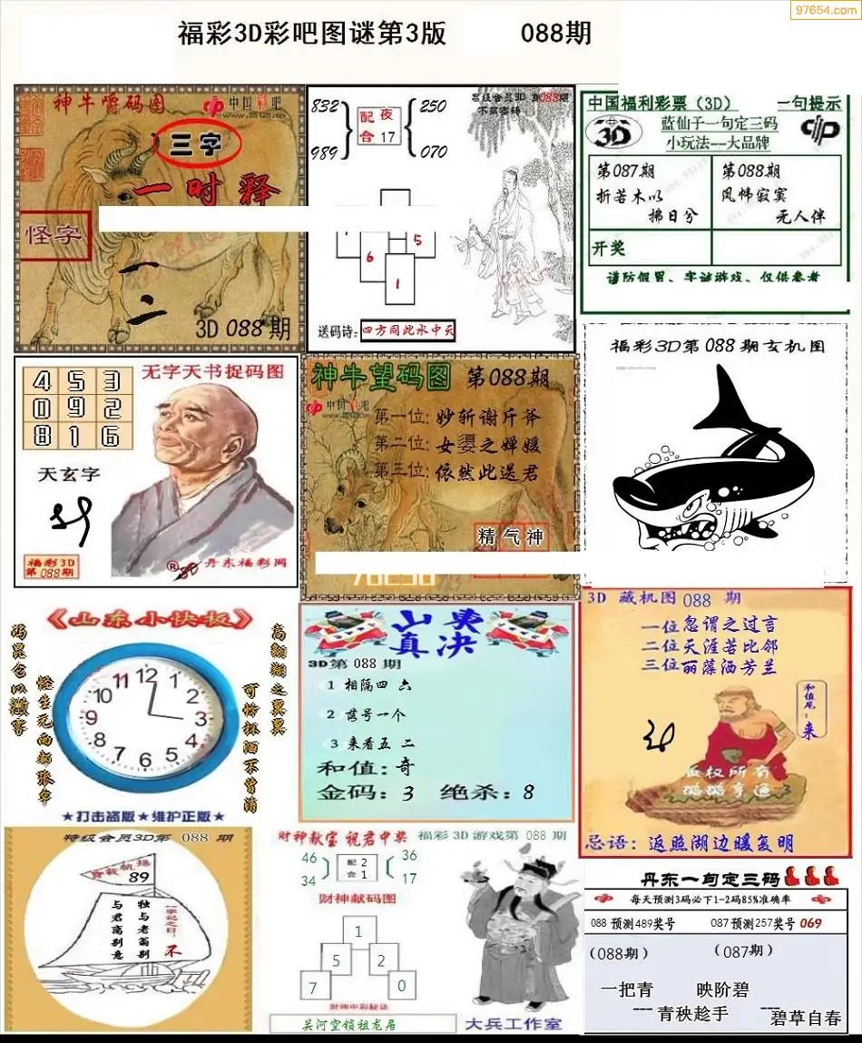 088期3D牛彩预测报+彩吧字谜报