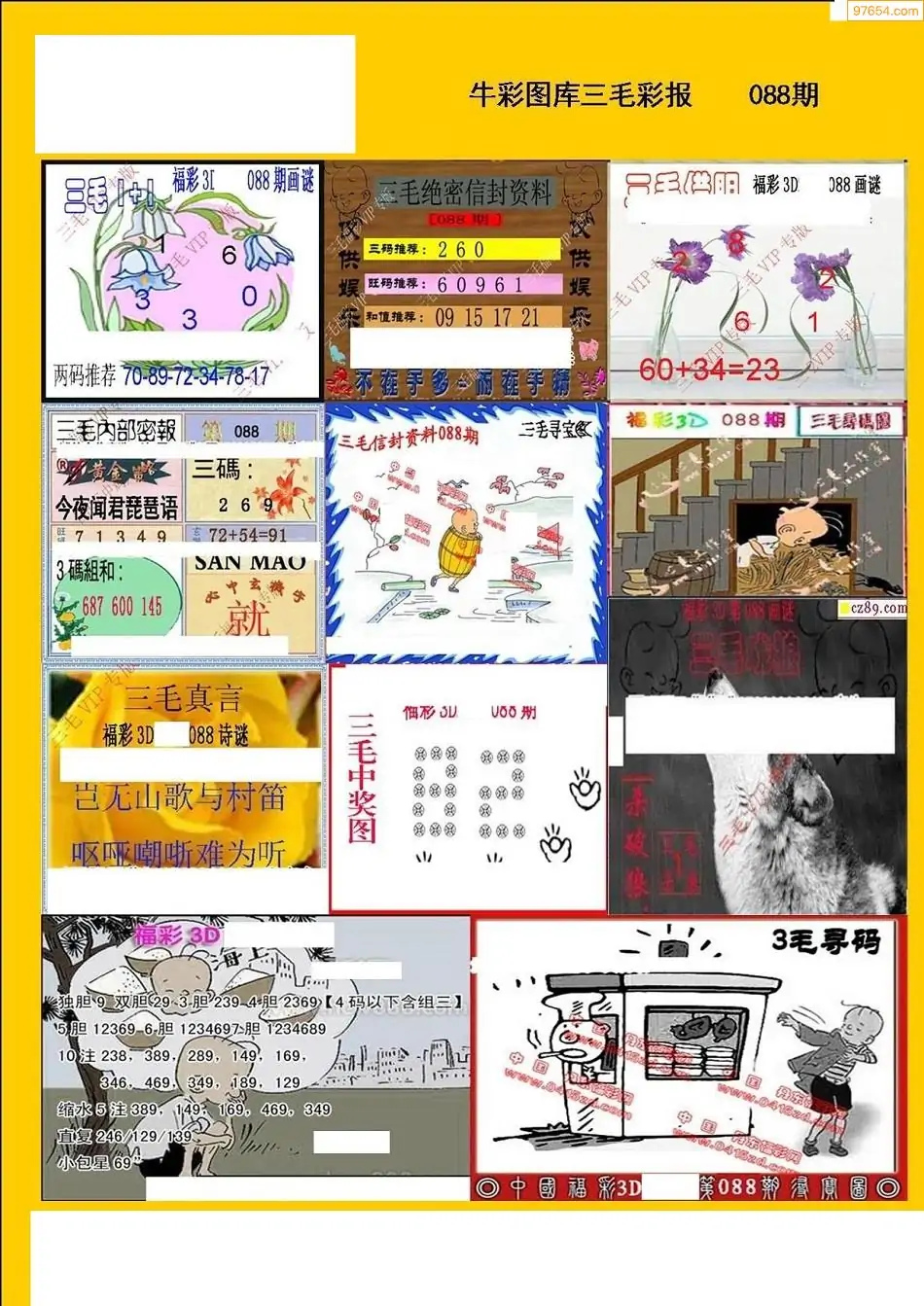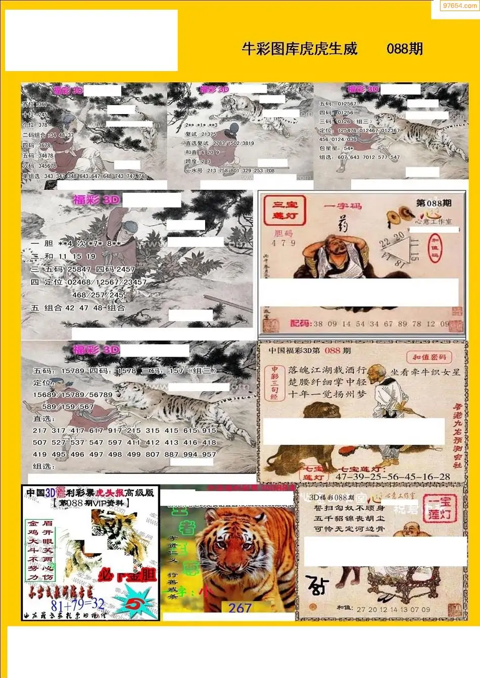 福彩3D088期天牛彩吧套图整合总汇