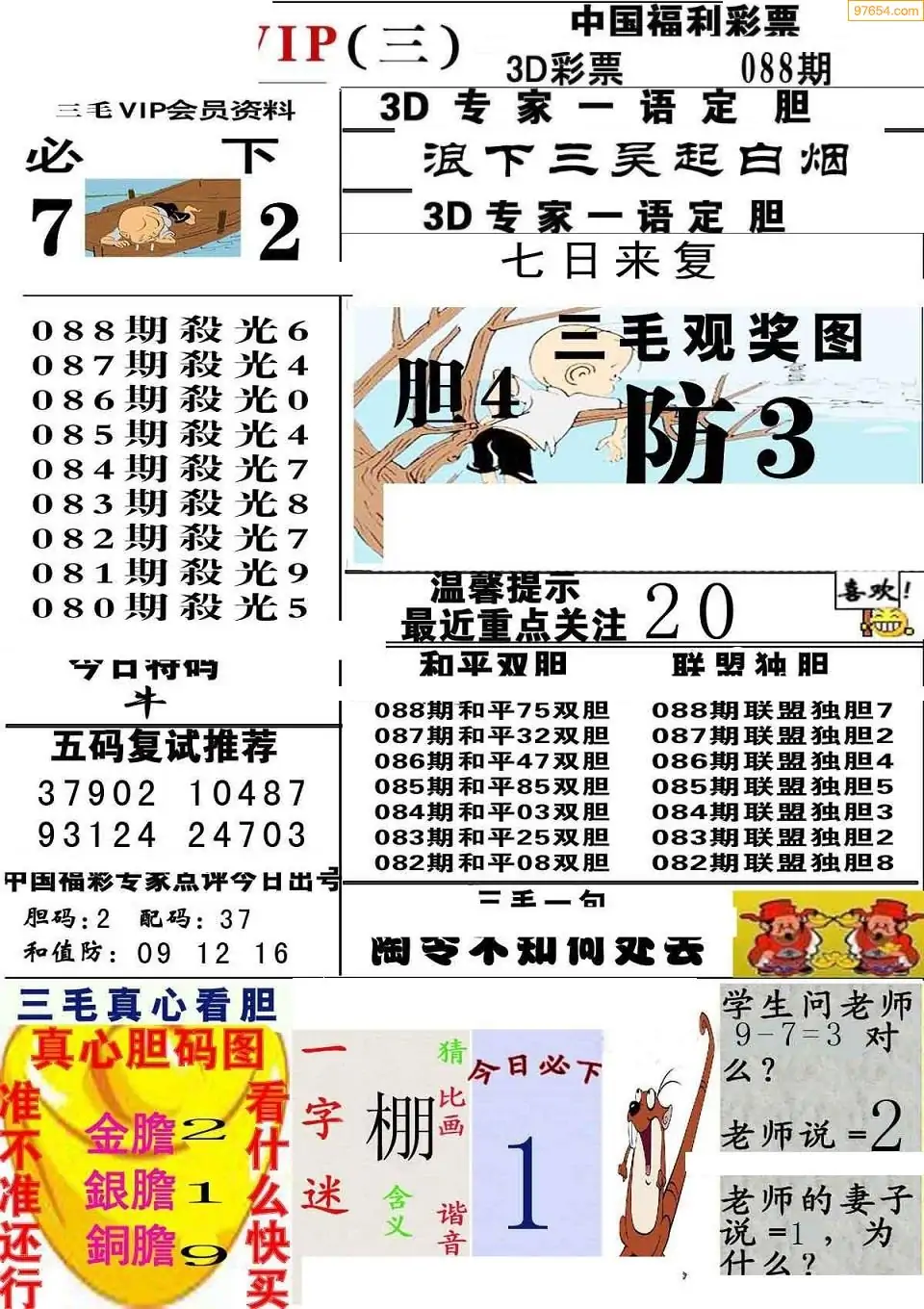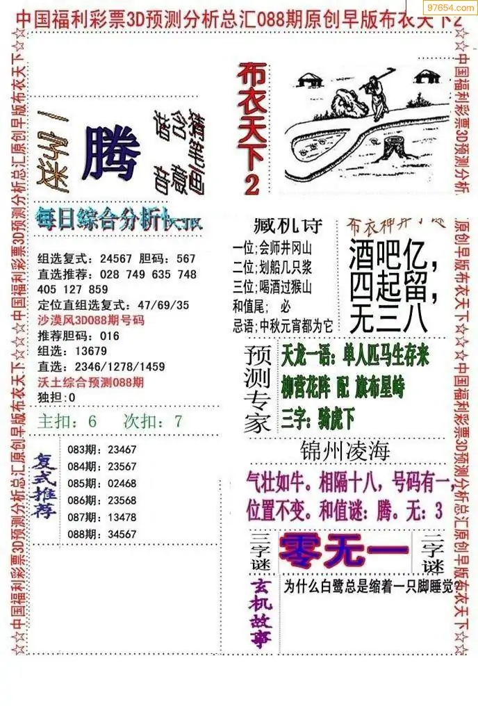 (3)2026088期3D预测总汇全图_福彩3d图谜字谜总汇