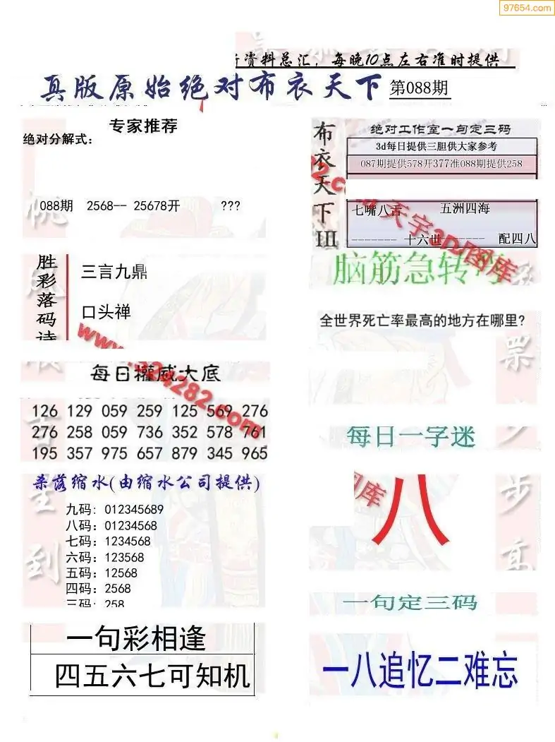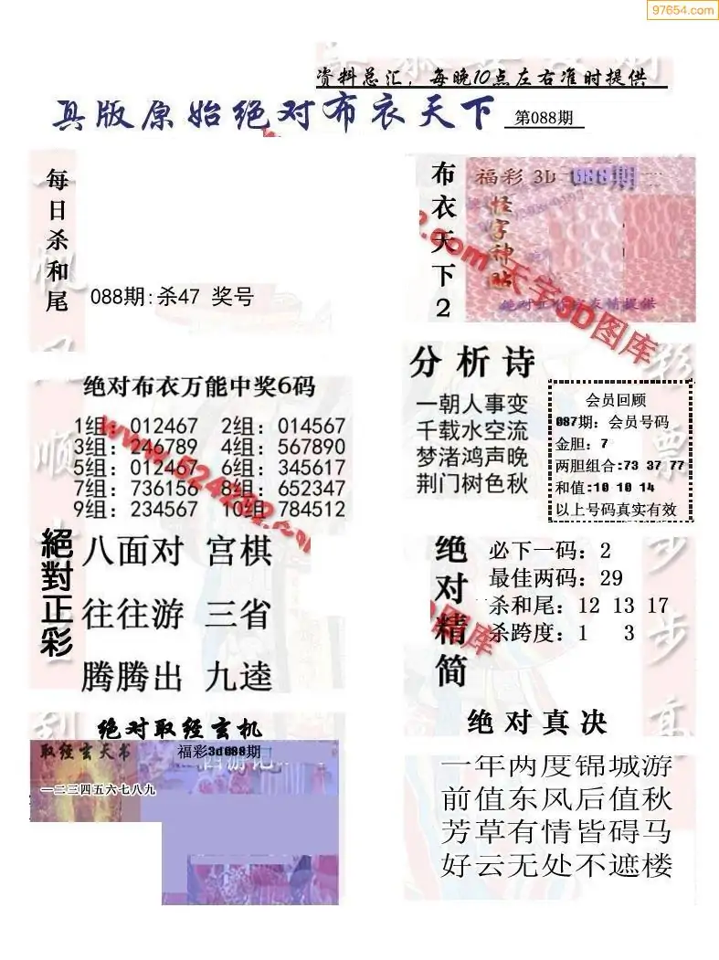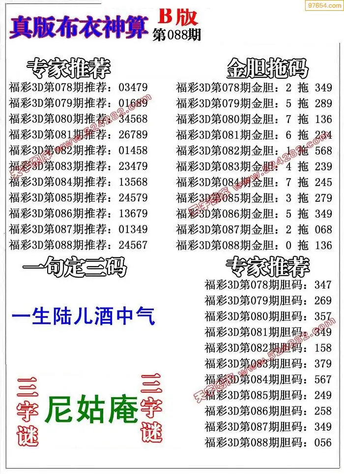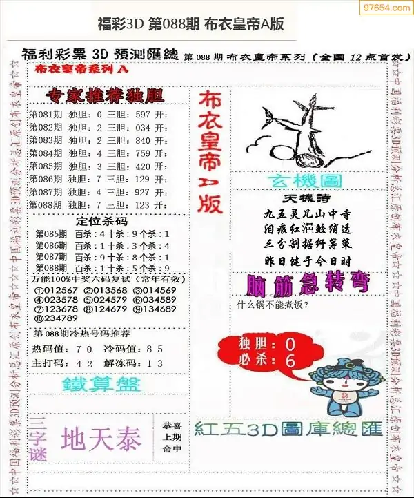 (2)26年088期本期3d图迷汇总_福彩3D图谜总汇图