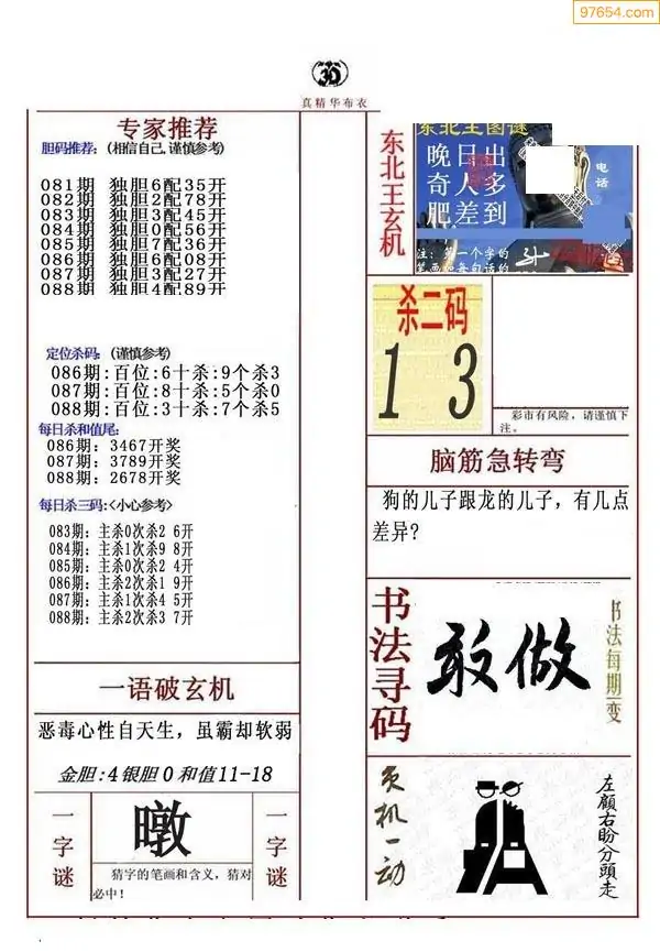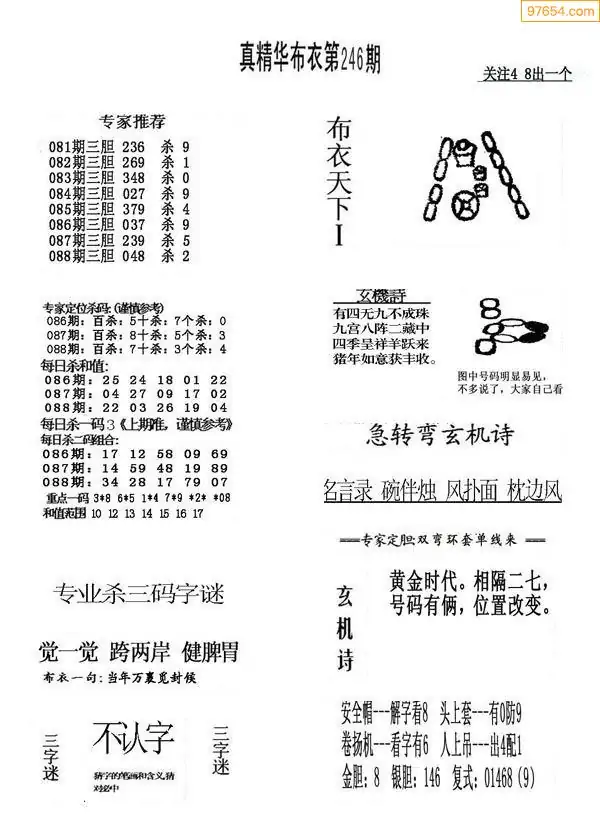 088期真版布衣神算专家推荐