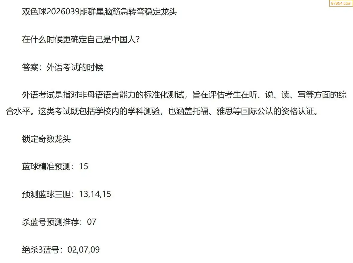 群星双色球26年039期脑筋急转弯龙头谜语