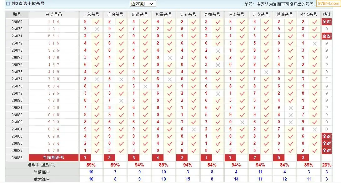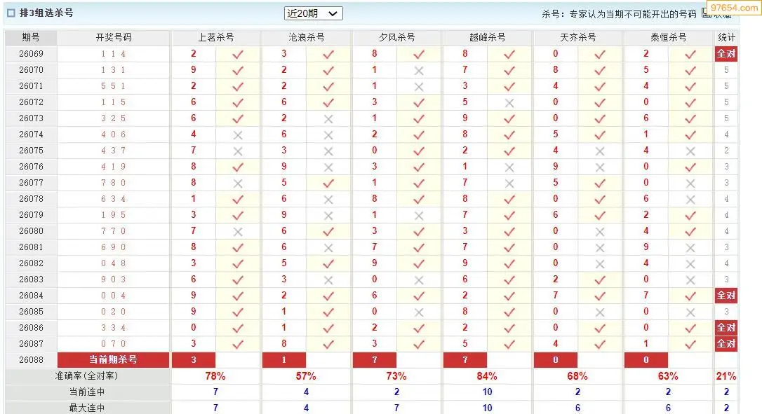 体彩p32026088期澳客彩票十大专家杀号
