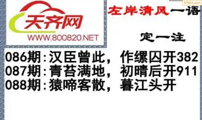 福彩3d左岸清风26年088期一语定一注