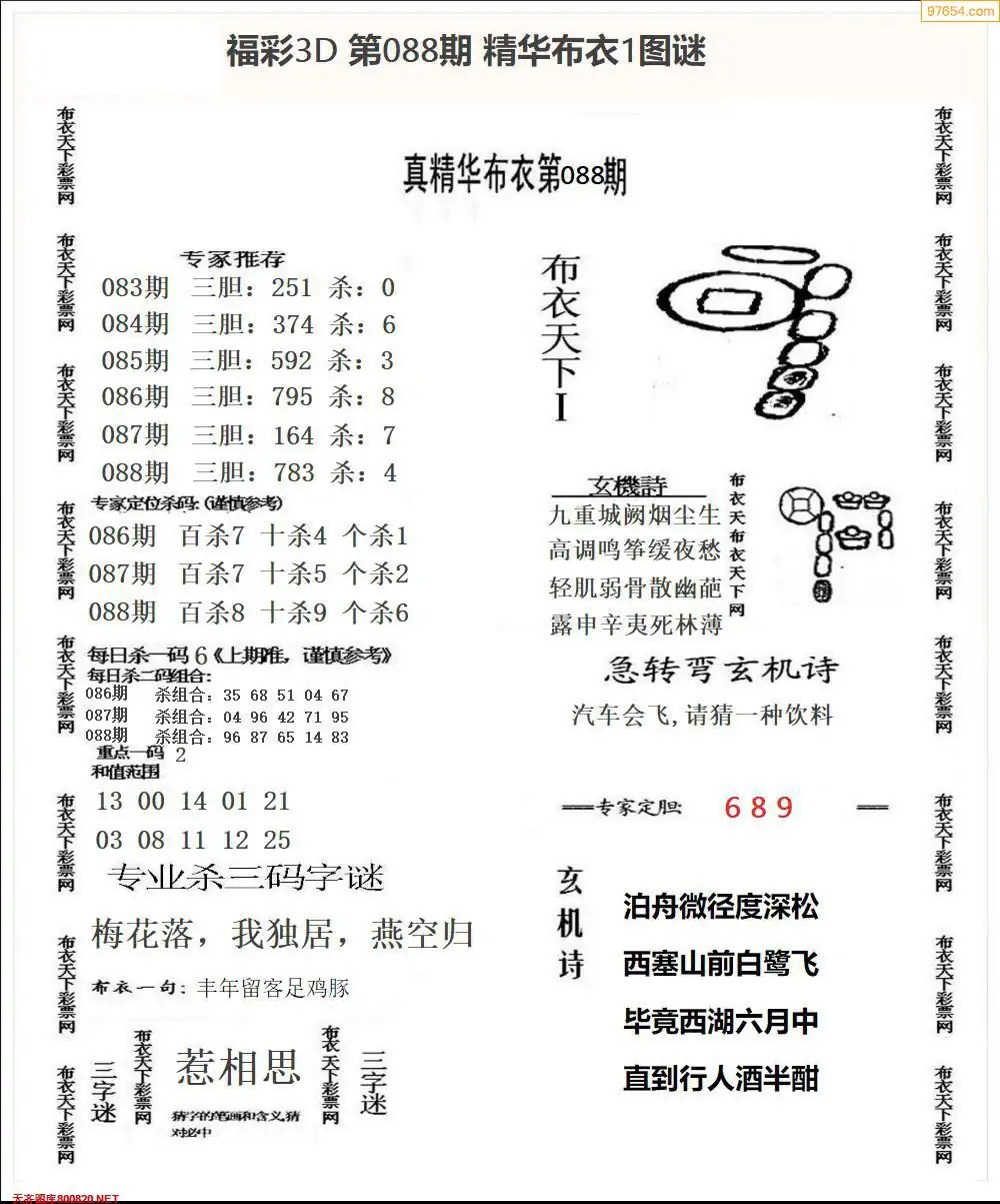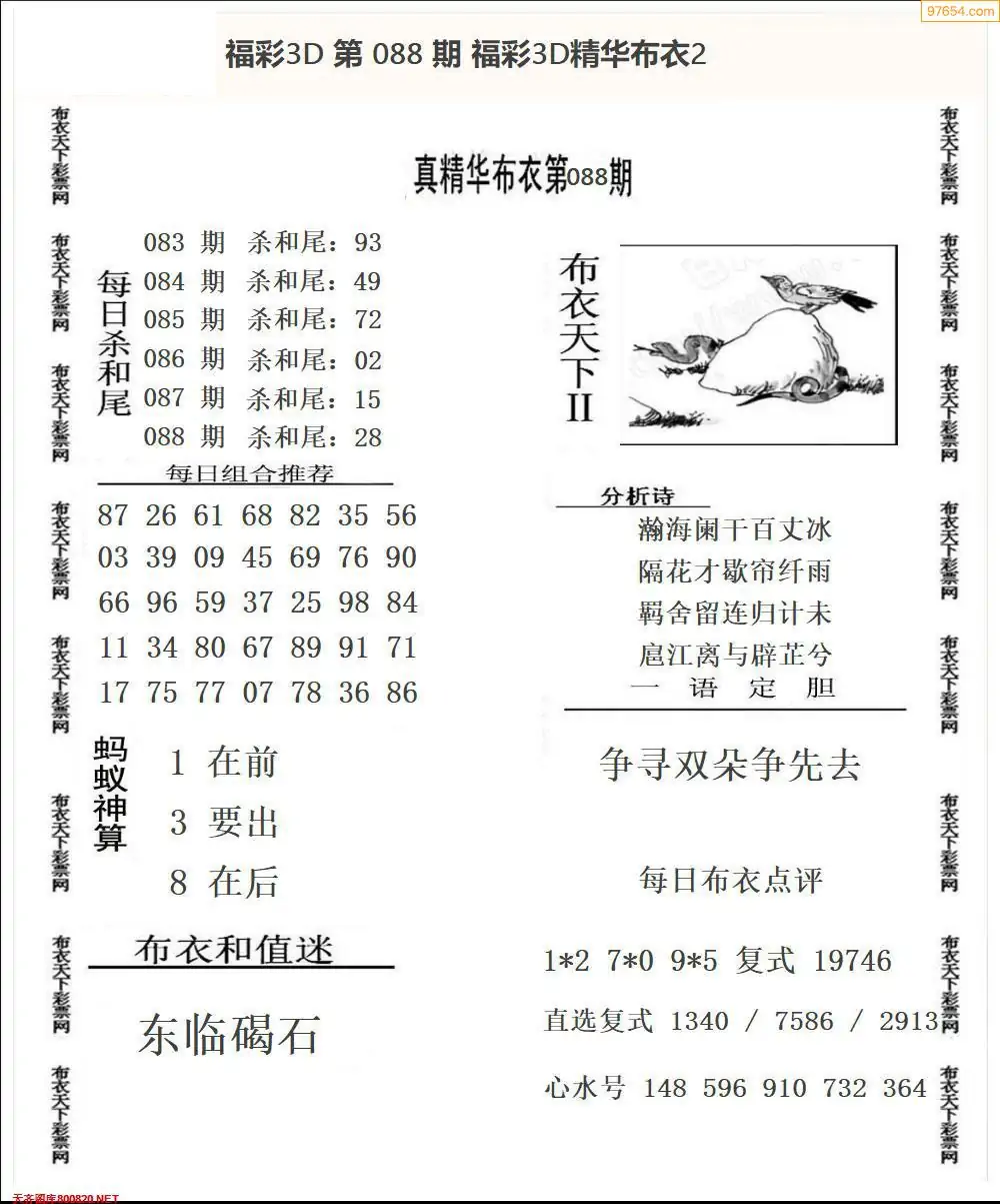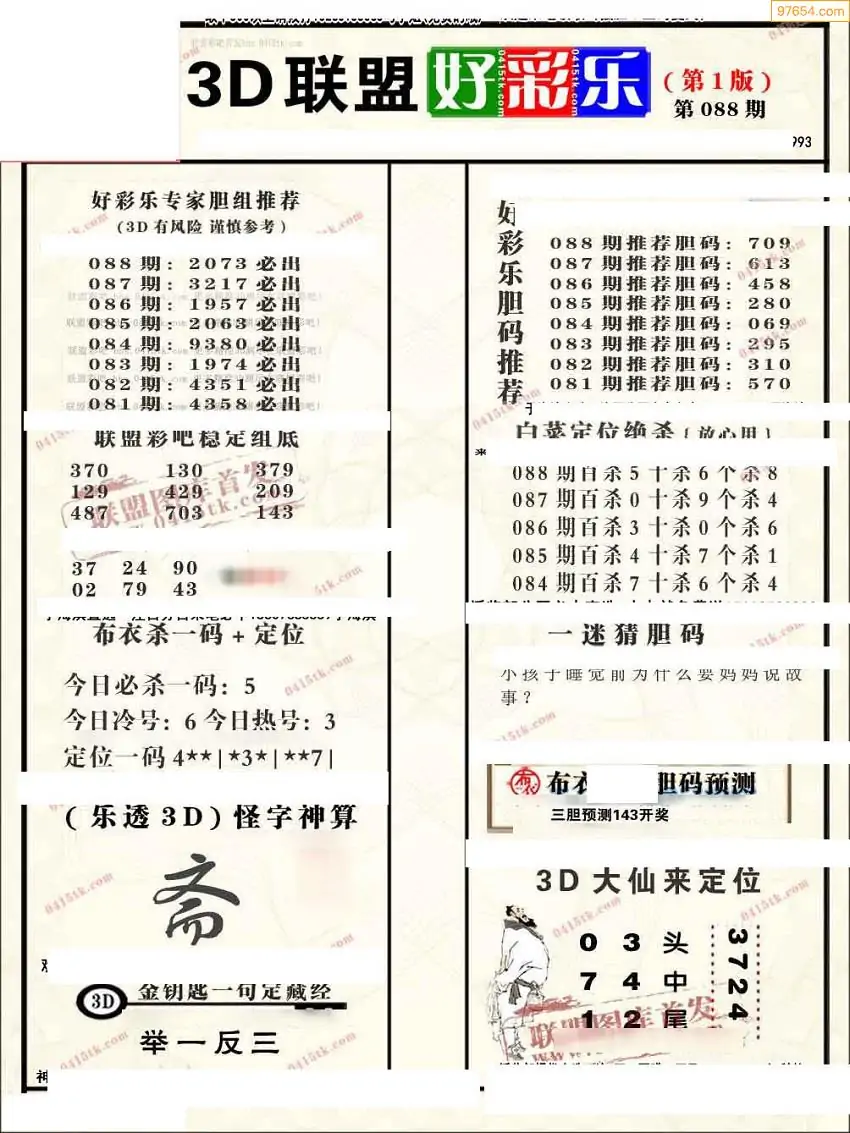 (2)26年088期本期3d图迷汇总_福彩3D图谜总汇图