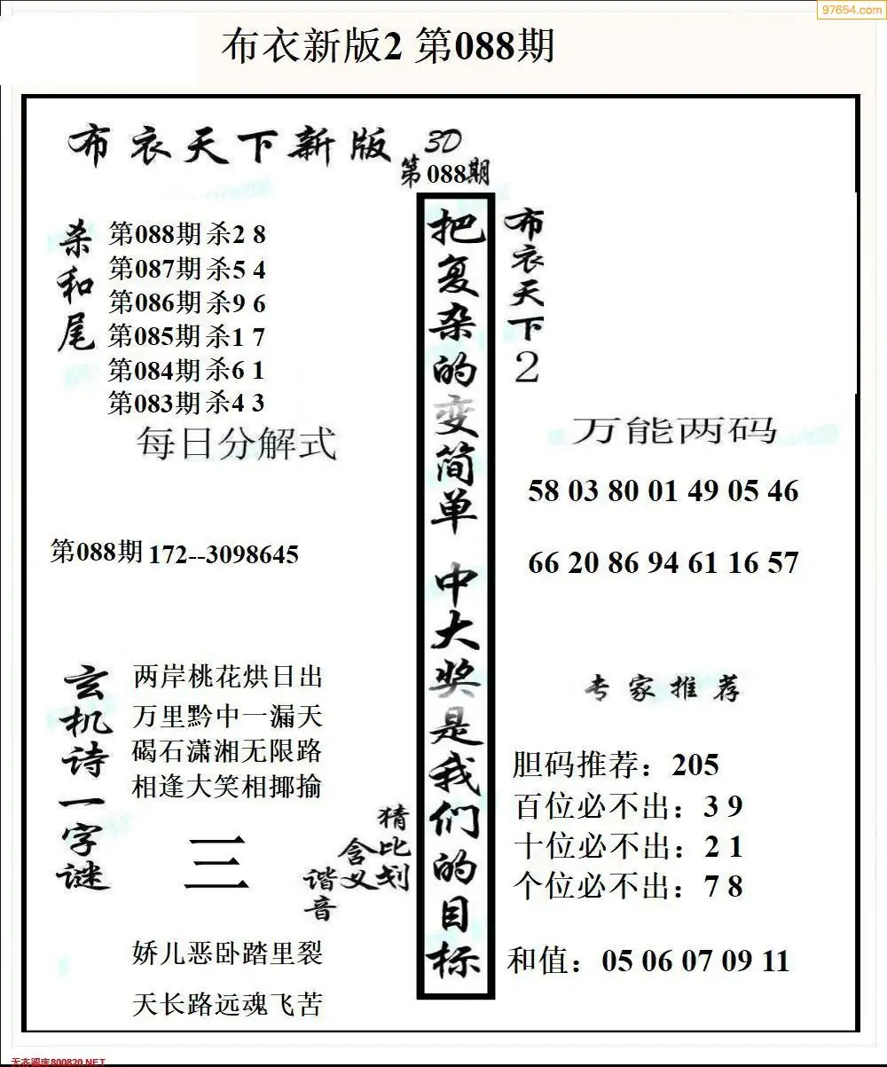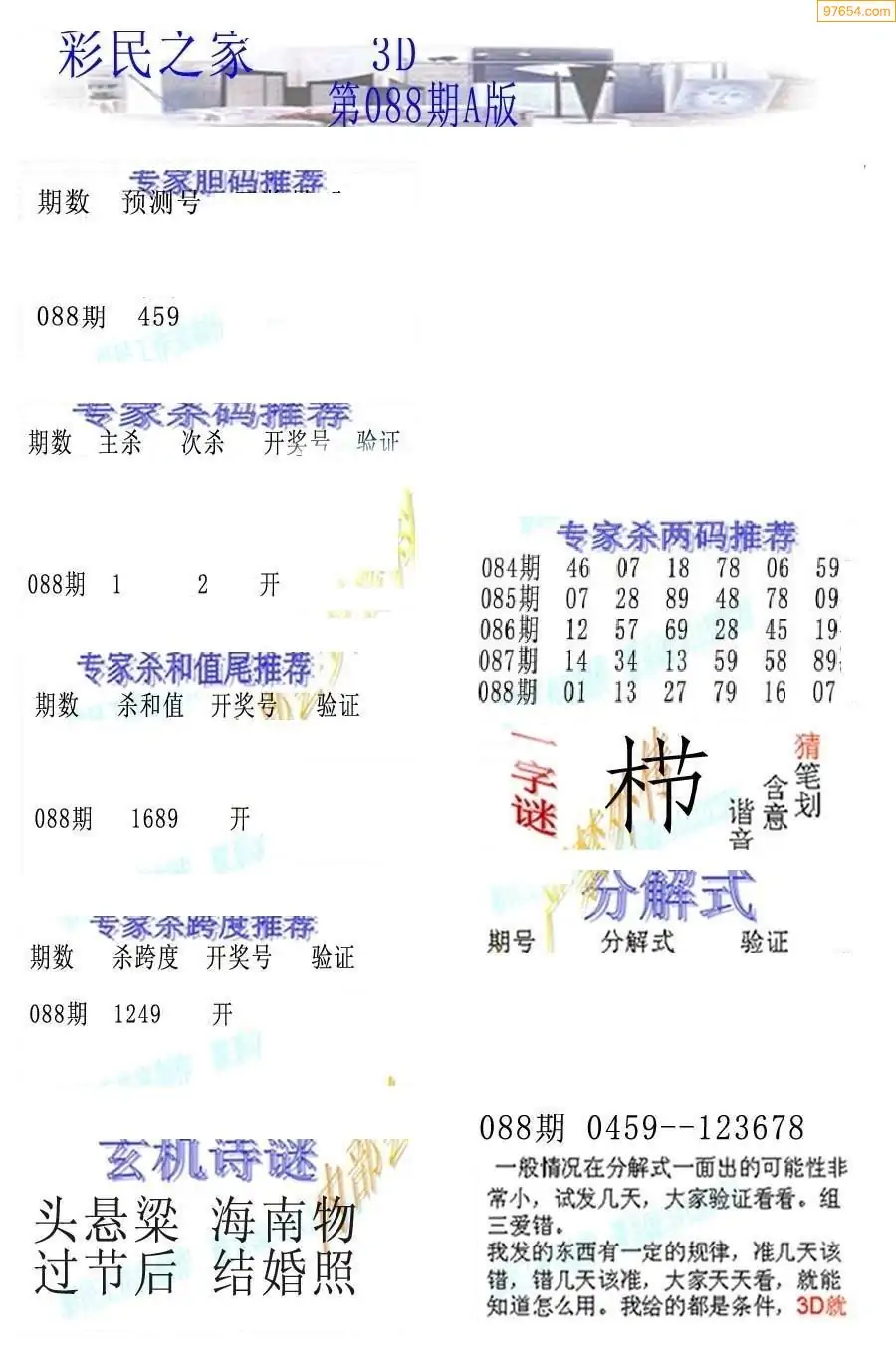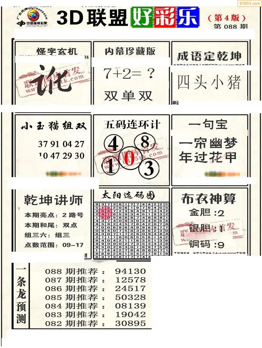 (2)26年088期本期3d图迷汇总_福彩3D图谜总汇图