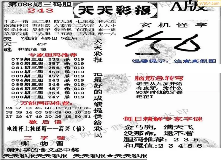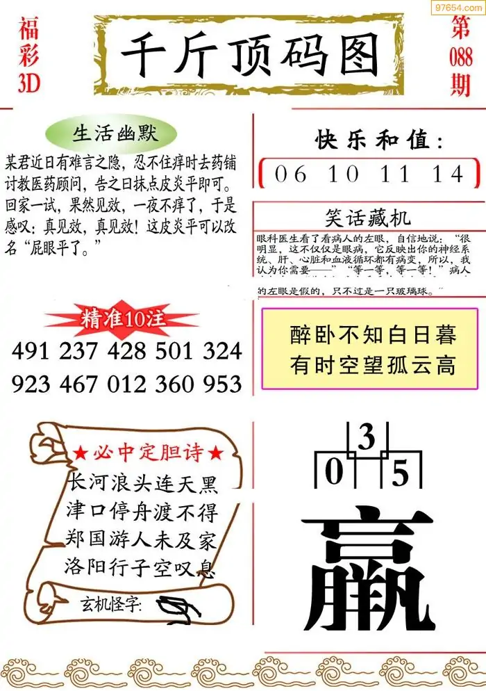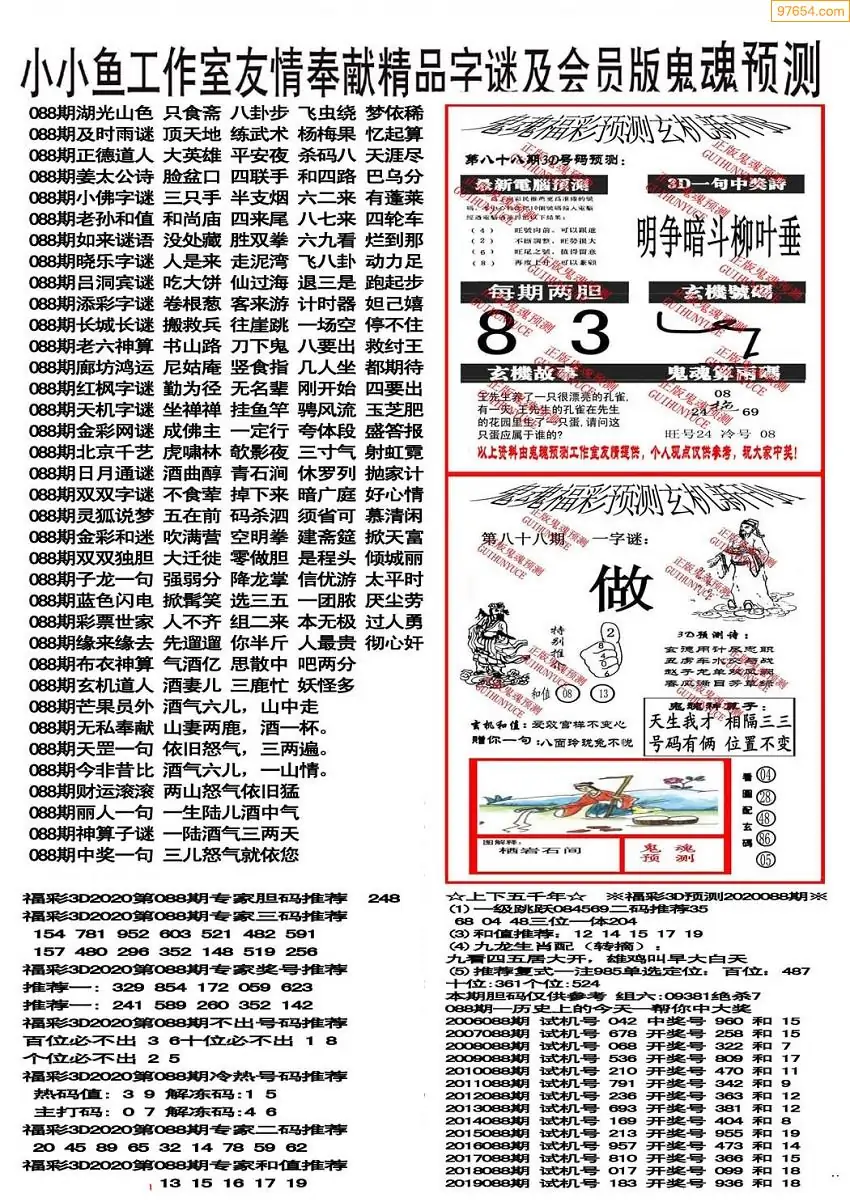 (3)2026088期3D预测总汇全图_福彩3d图谜字谜总汇
