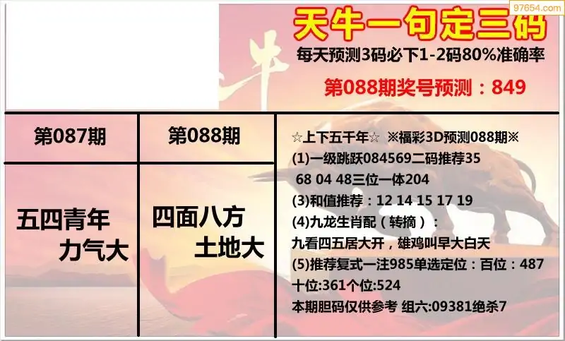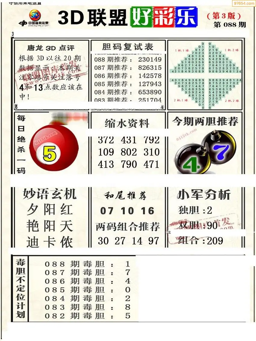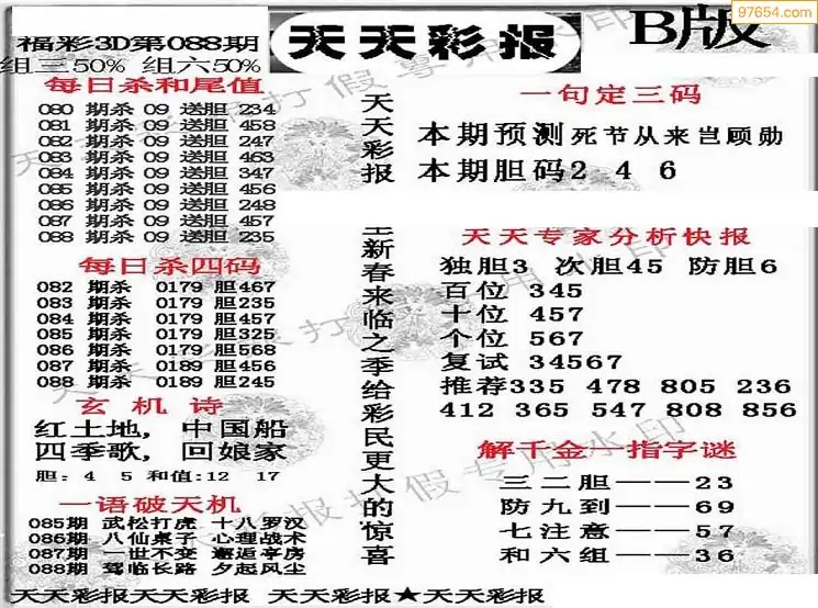 (8)26年088期今日3d各类彩报汇总