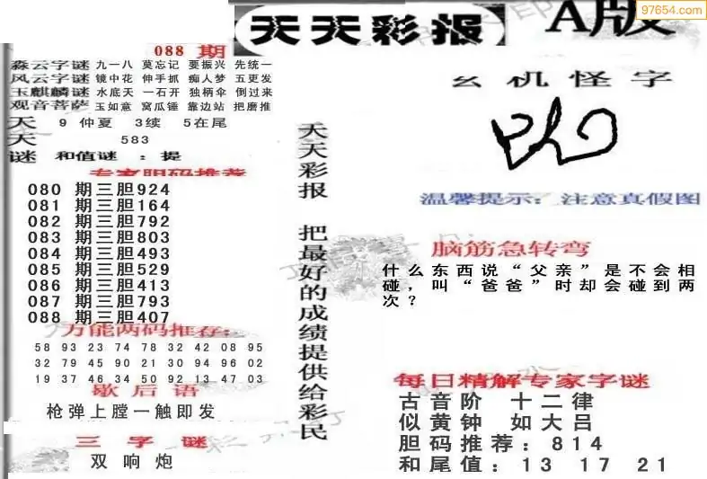 (5)26年088期福彩字谜图谜总汇
