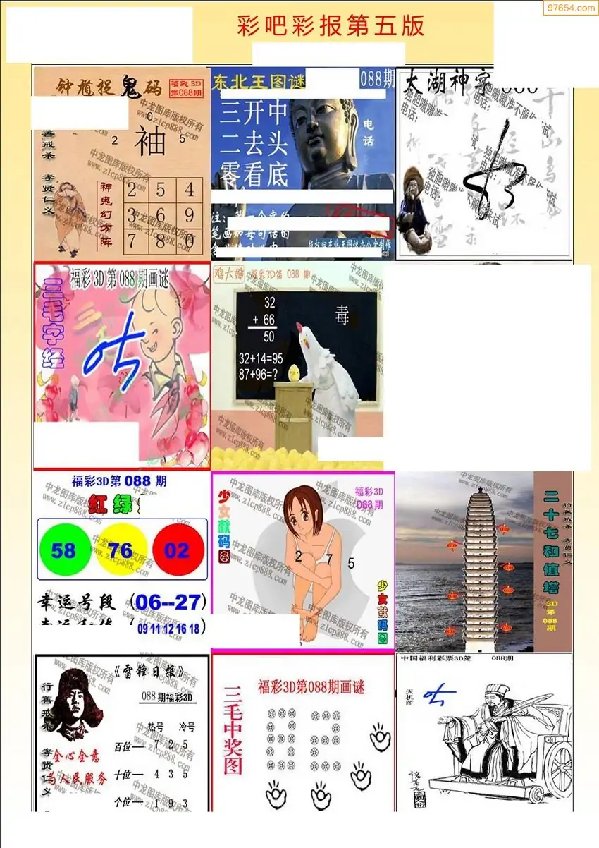 (4)26年088期本站原创总汇全图_福彩图谜字谜总汇大全
