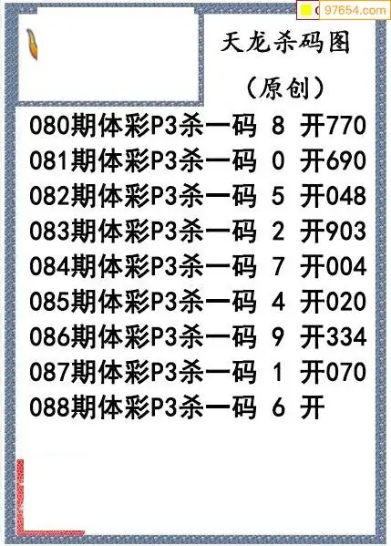 26年088期天龙体彩P3杀码图谜