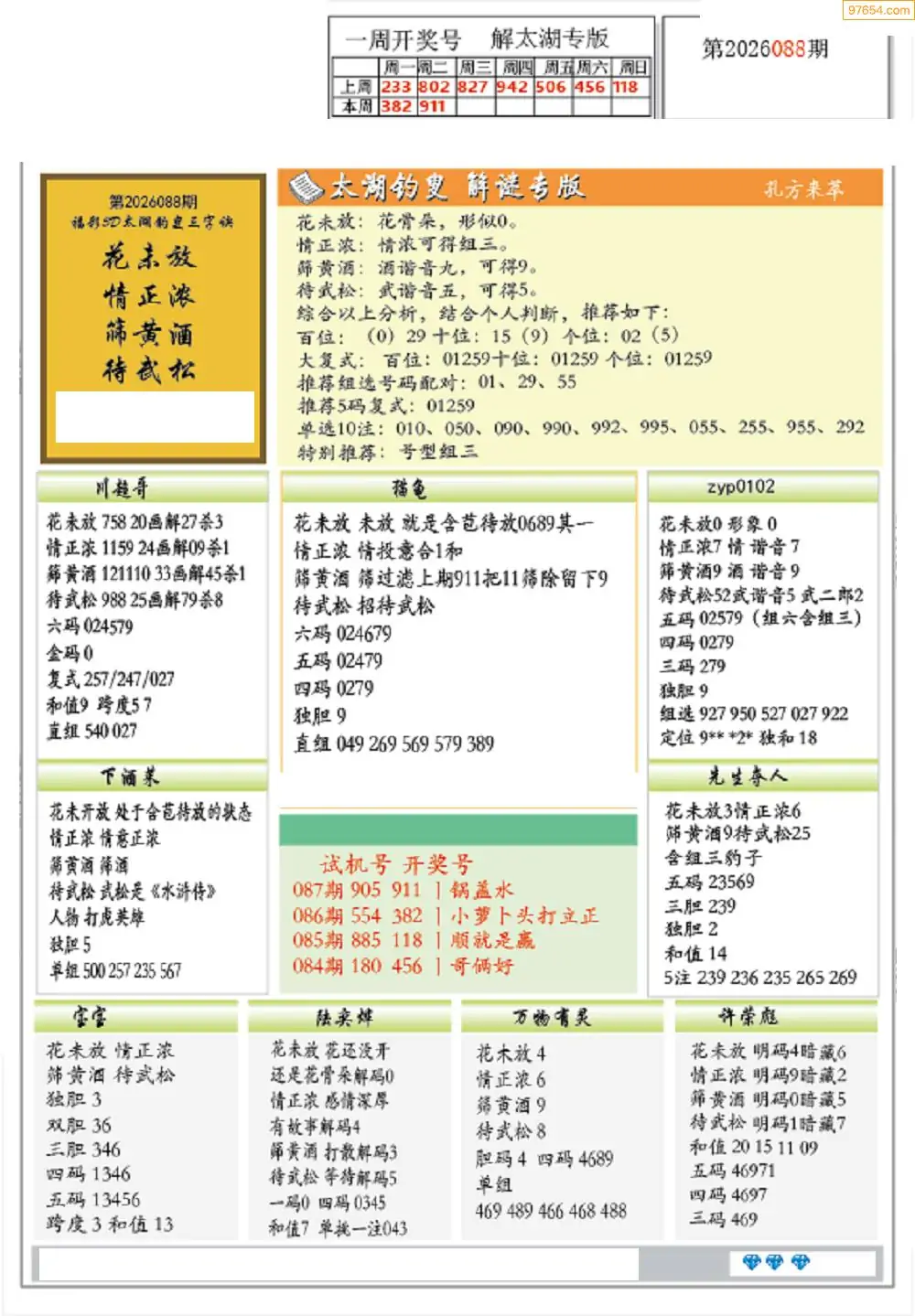 26年088期3D各板块资料整合汇总