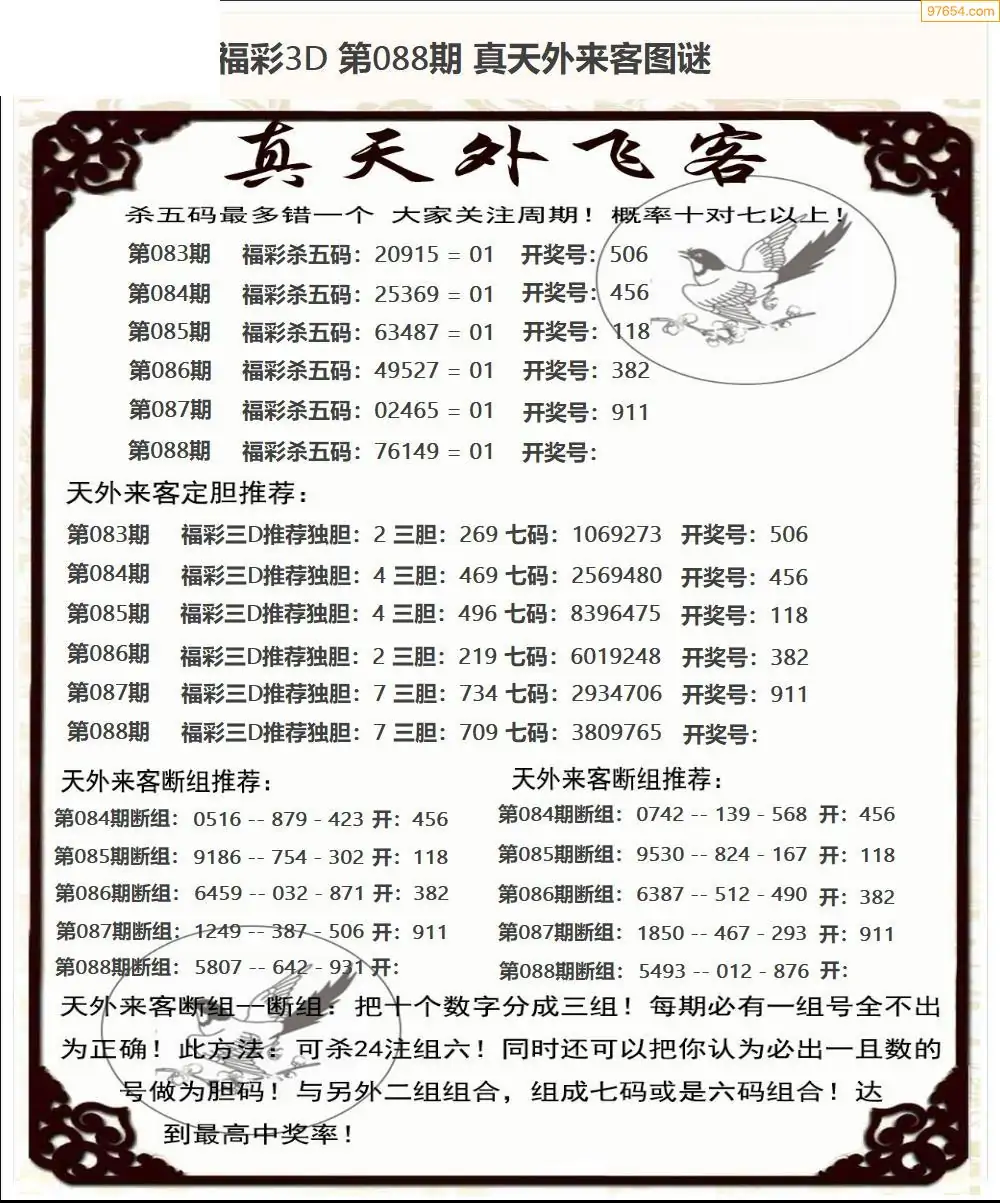 26年088期福彩3d真天外飞客图