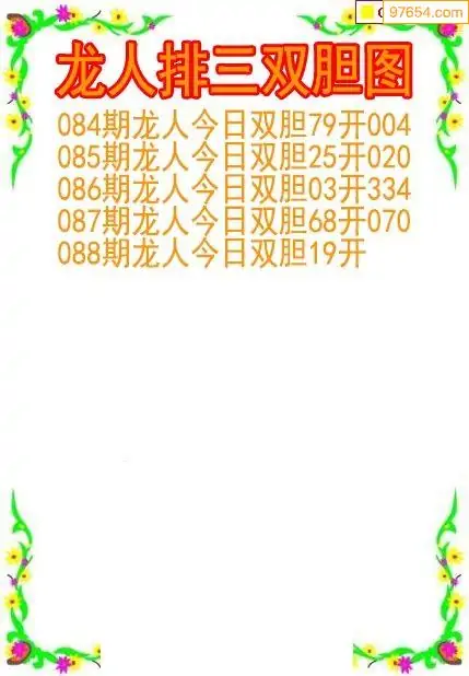 26088期龙人排列3双胆图