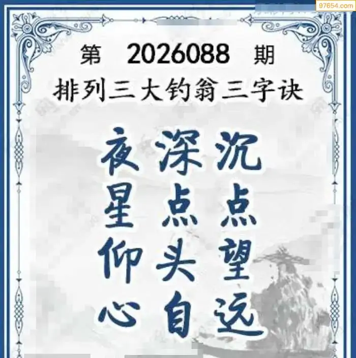 26年体彩p3第088期大钓翁三字诀