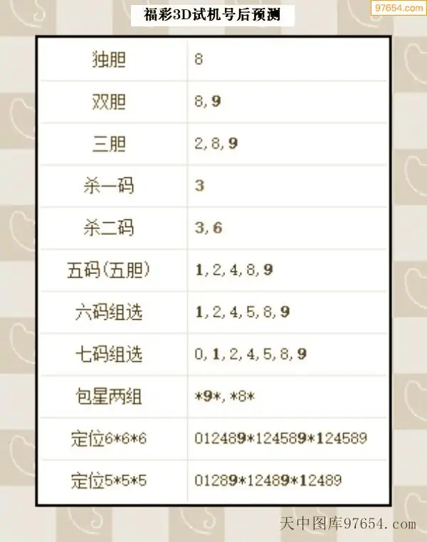 26年088期天中图库专家3D试机号后分析汇总