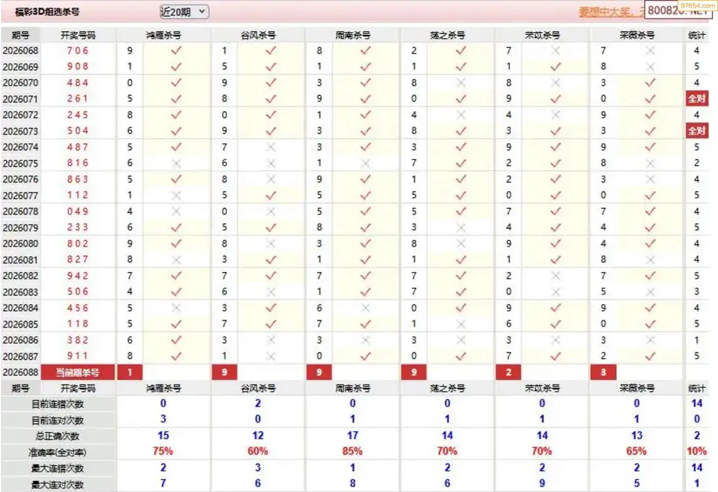 惊喜不断杀号预测3d088期 7连中