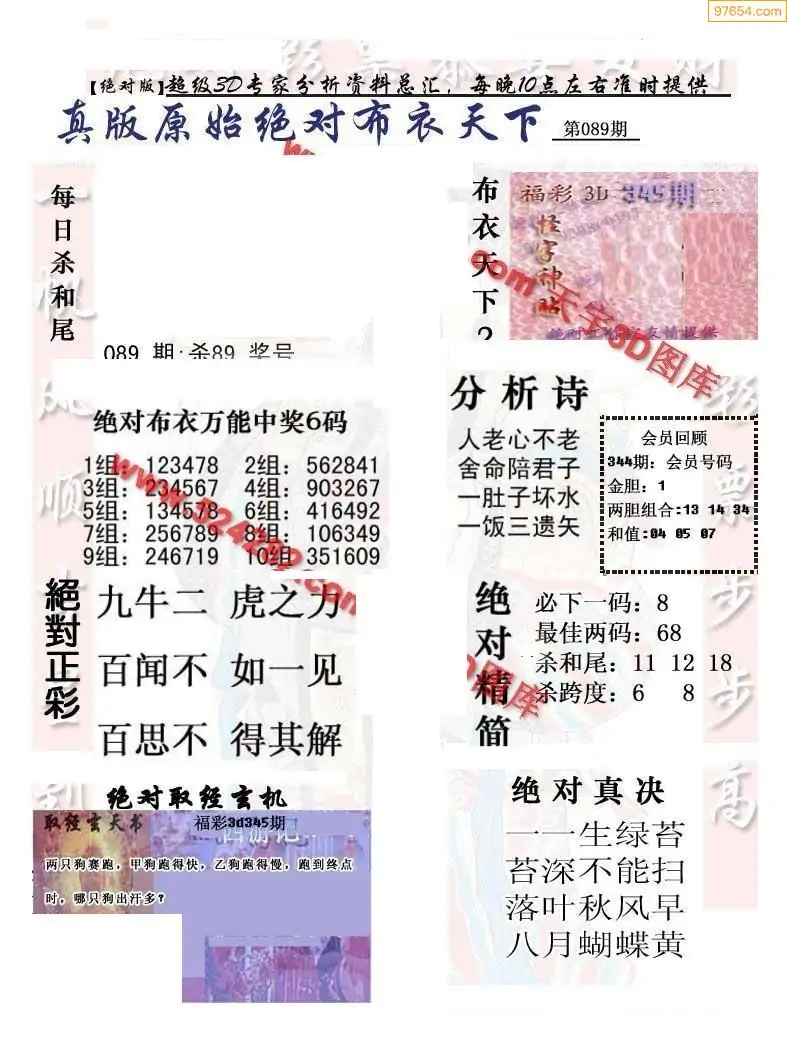 福彩089期3d真精华布衣+布衣早报(转载)