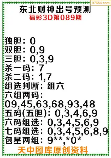 3d原创089期东北财神预测