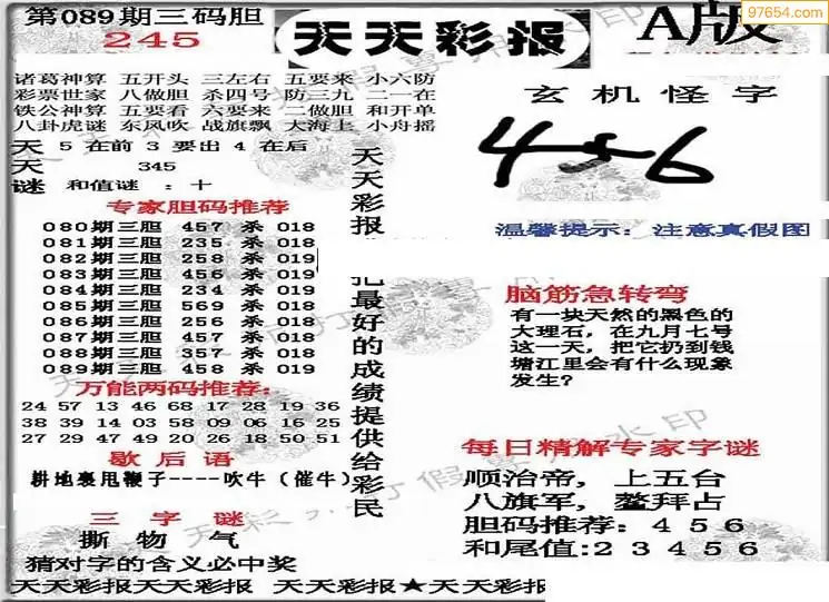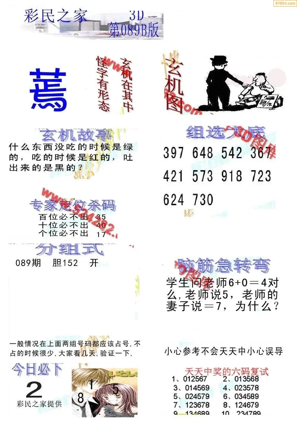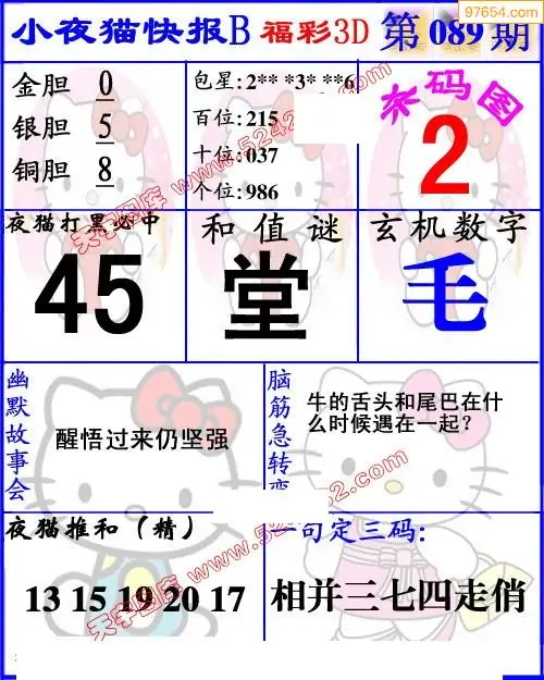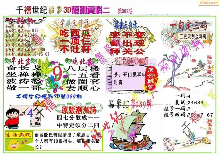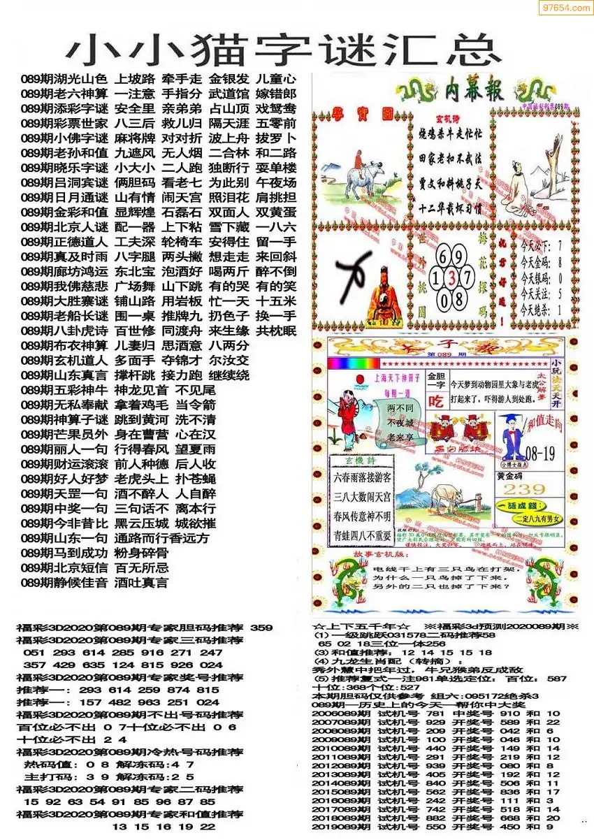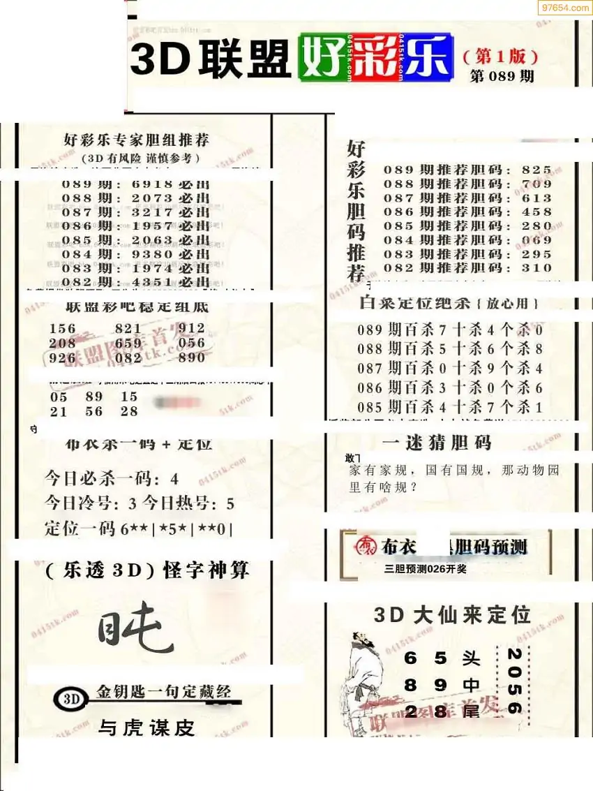 089期3D牛彩预测报+彩吧字谜报