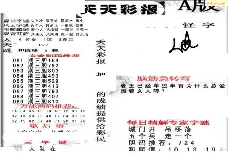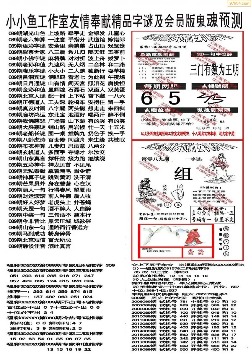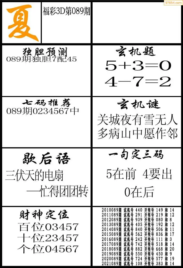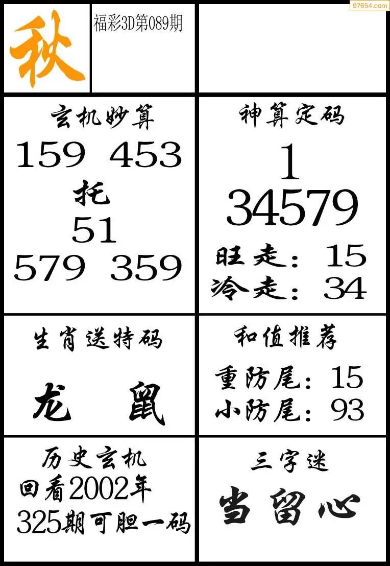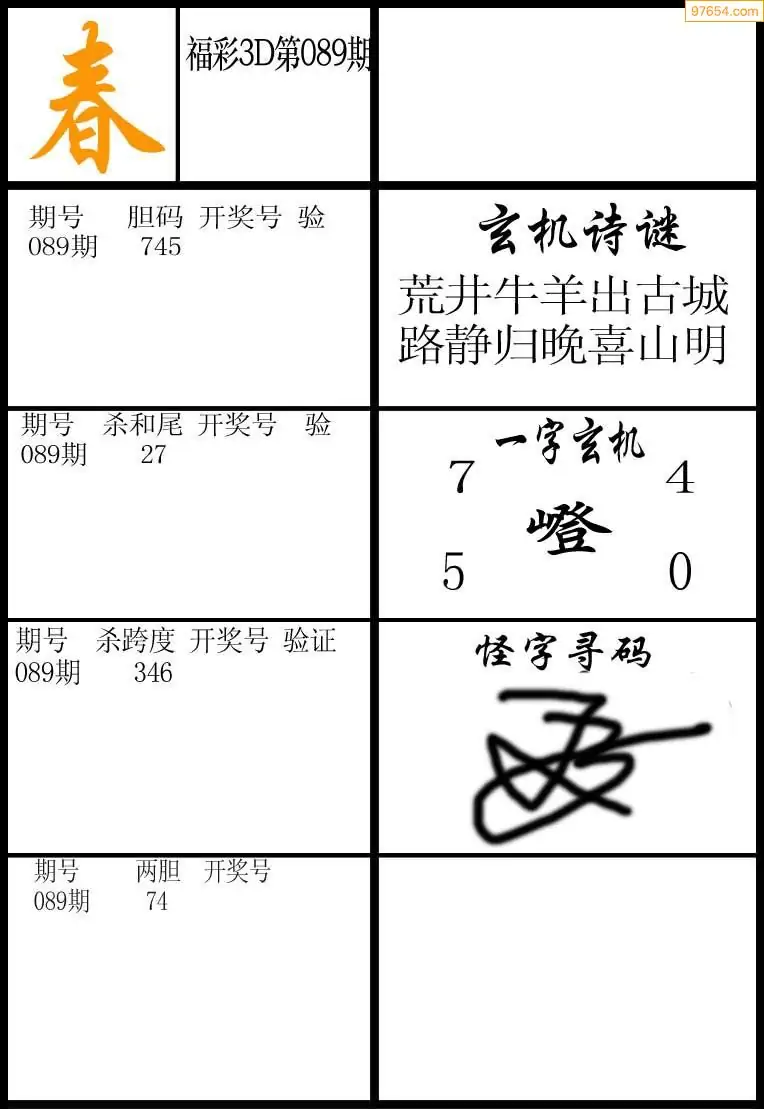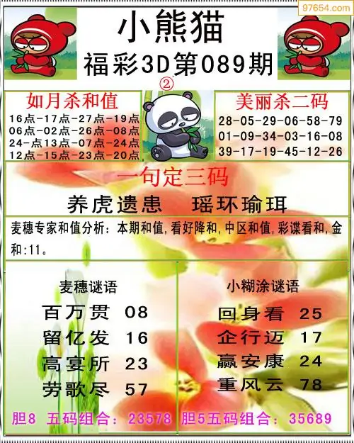 089期3D牛彩预测报+彩吧字谜报